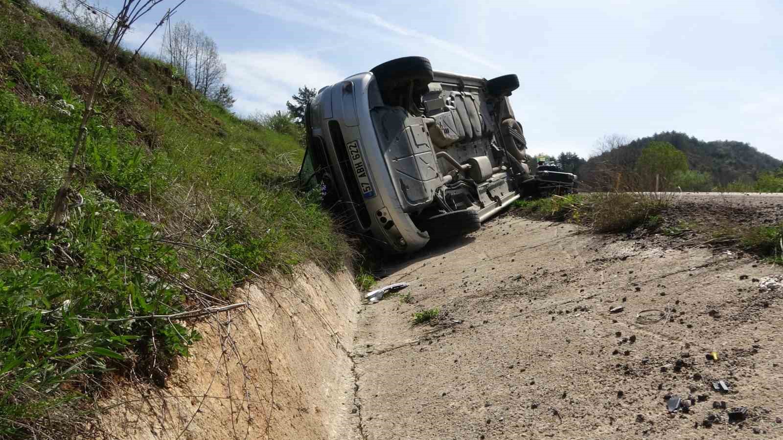 Kastamonu’da virajı alamayan hafif ticari aracın refüje çarptıktan sonra takla attı. Kazada 4 kişi yaralandı.