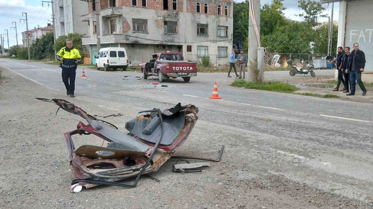 Kaza, Fatih Mahallesi Hal Caddesi’nde meydana geldi. Edinilen bilgiye göre, ilçe merkezine seyir halinde olan Abdullah Kısa (57) yönetimindeki 06 DNA 5513 plakalı kamyon ile karşı yönden gelen Mehmet Şişman idaresindeki 55 NE 822 plakalı pikap çarpıştı. Kazada kamyonun kasasına çarpan pikap hurdaya döndü, sürücüsü yaralandı. İhbar üzerine olay yerine sevk edilen sağlık ekipleri, yaralı sürücüyü Bafra Devlet Hastanesi’ne kaldırdı.