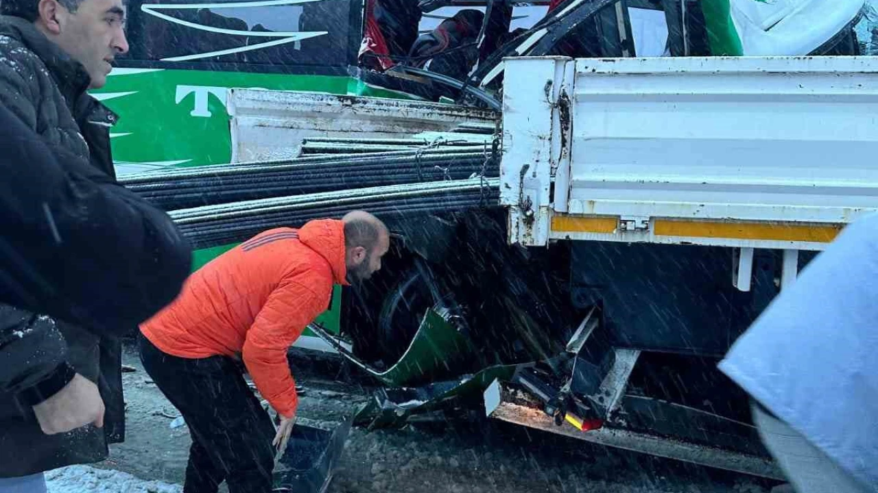 Tokat’ta karlı yolda kayan yolcu otobüsü, bir tıra arkadan çarptı. Kazada 1’i ağır 12 kişi yaralandı.