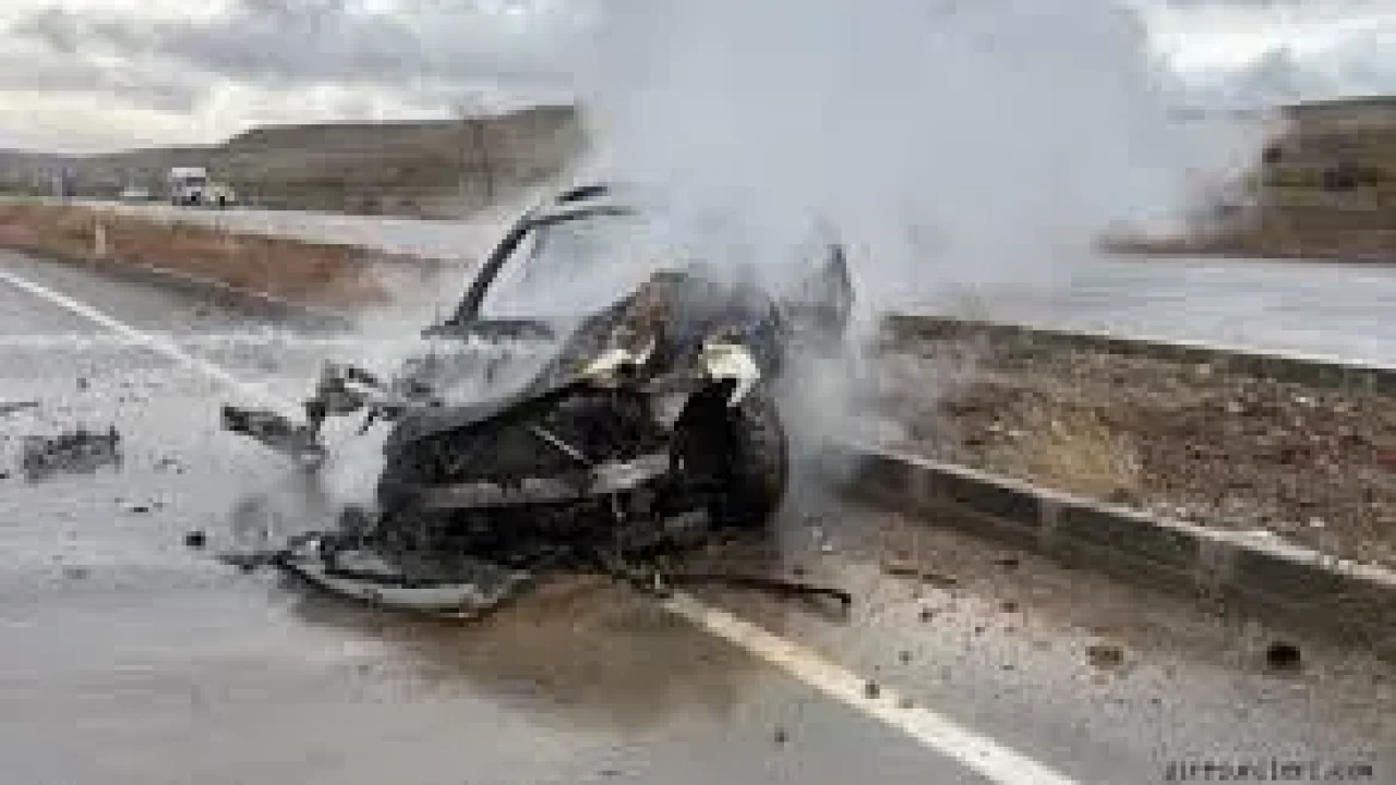 Tokat’ta yağmur nedeniyle kayganlaşan yolda kontrolden çıkan otomobil kaza yaptı. Kaza sonrası yanan otomobil alev topuna döndü.