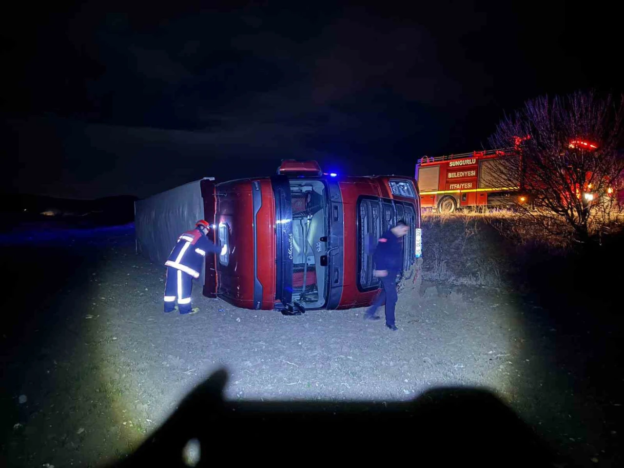 Kaza, Sungurlu-Alaca kara yolunda meydana geldi. Edinilen bilgiye göre, 06 DLC 327 plakalı tır ile seyir halinde olan M.A., yola aniden çıkan köpeğe çarpmamak için manevra yaptı. Manevra sırasında sürücünün direksiyon hakimiyetini kaybetmesi neticesinde yoldan çıkan tır devrildi. Kazada sürücü yaralanırken, 112 Acil Çağrı Merkezi’ne yapılan ihbar üzerine olay yerine sağlık, polis, jandarma, Sungurlu Belediyesi İtfaiye Müdürlüğü ekipleri sevk edildi. Yaralı sürücü, sağlık ekiplerince yapılan ilk müdahalenin ardından Sungurlu Devlet Hastanesine kaldırıldı.