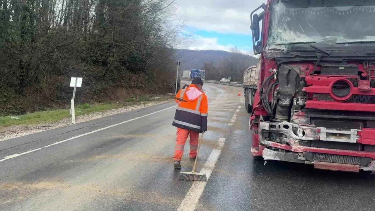 D-655 kara yolu Kurtsuyu mevkiinde Düzce’den Akçakoca istikametine seyreden M.C.Ç. idaresindeki 80 AAH 672 plakalı tır rampa inişinde yağışın da etkisiyle kayganlaşan yolda kontrolden çıktı. Sürücüsünün direksiyon hakimiyetini kaybettiği ağır vasıta virajı alamayarak önce yol kenarındaki beton su kanalına, ardından savrularak sol taraftaki bariyere çarptı. Çarpmanın şiddetiyle makas atan tır, kara yolunun iki şeridini birden trafiğe kapattı. Yoldan geçen diğer sürücülerin durumu 112 Acil Çağrı Merkezi’ne bildirmesi üzerine bölgeye jandarma, sağlık ve Karayolları ekipleri sevk edildi.