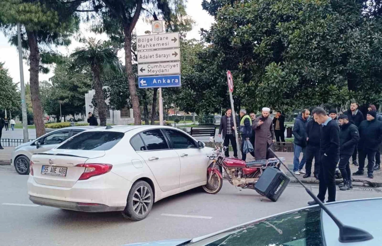 Samsun’da meydana gelen trafik kazasında motosiklet otomobile saplandı.