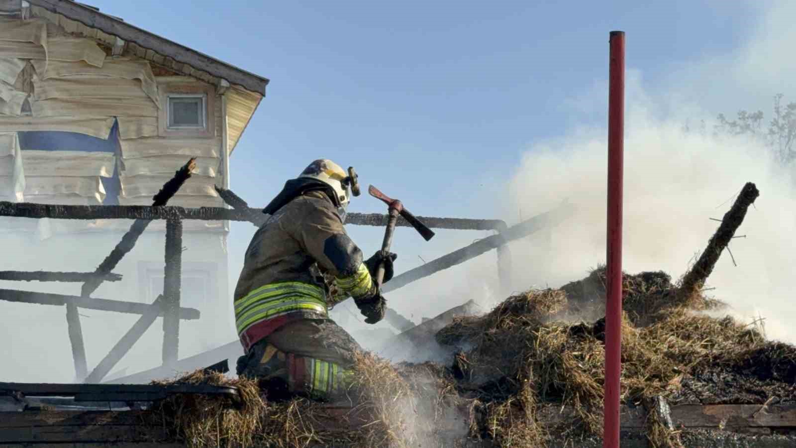Düzce’de samanlıkta çıkan yangın itfaiye ekiplerinin çalışmaları ile söndürüldü. Bir itfaiye erinin saman balyalarının içine girmesi ise görüntülere yansıdı.
