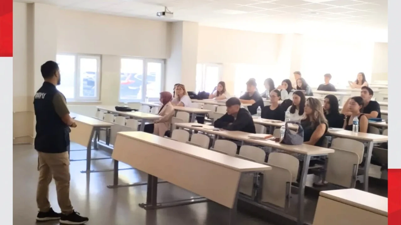 Siber güvenlik farkındalığı kapsamında öğrencilere güçlü şifre oluşturma, iki faktörlü doğrulama kullanma, güvenilir internet ağlarını tercih etme ve kişisel bilgileri paylaşmama konularında uyarılar yapıldı. Öğrencilerin dijital ortamda karşılaşabilecekleri risklere karşı bilinçli hareket etmeleri gerektiği vurgulandı.