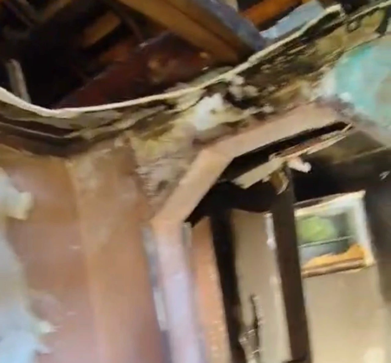 Ekiplerin çalışmasının ardından harabeye dönen evin iç kısmı ve oluşan büyük hasar görüntülendi.