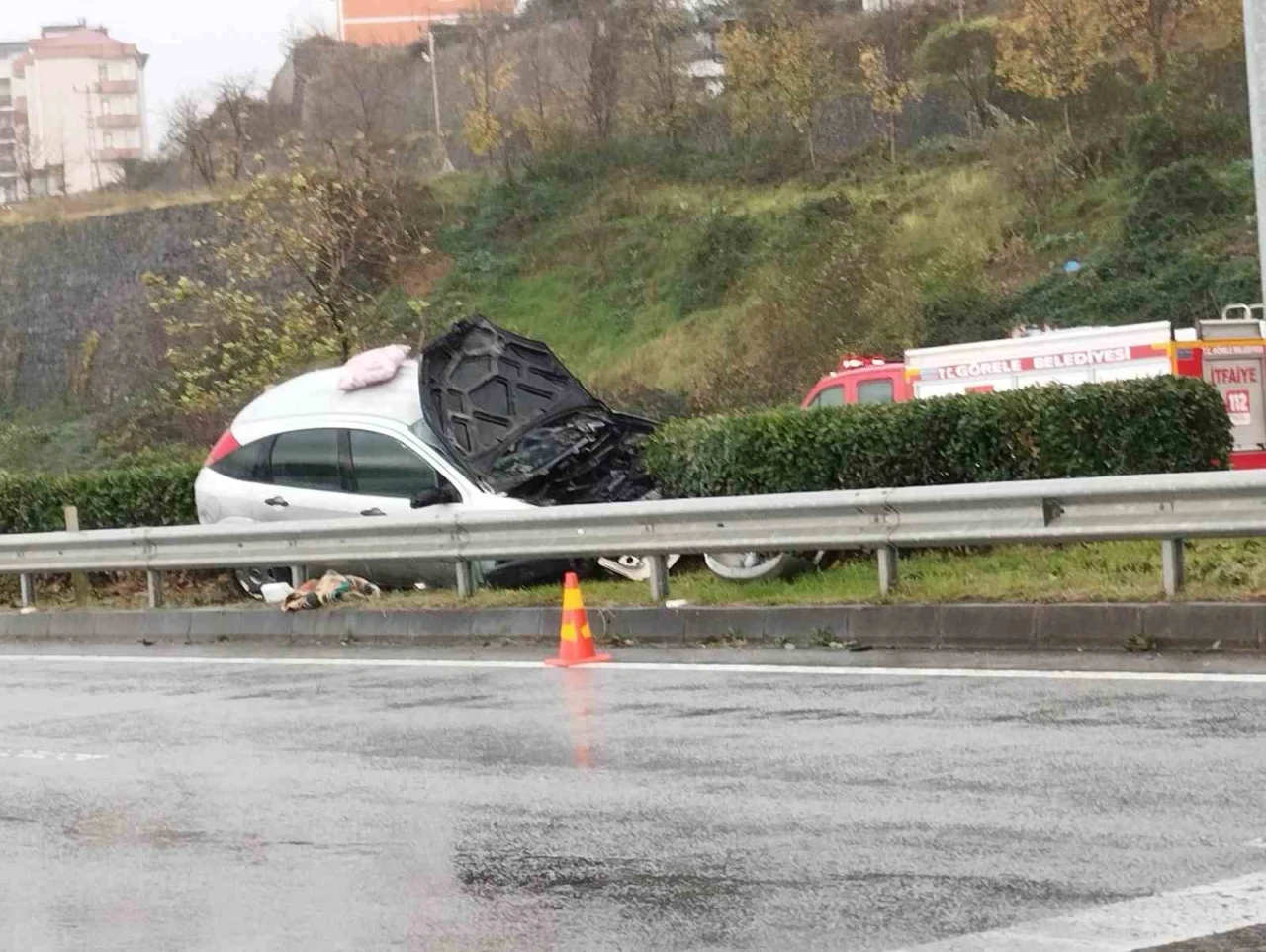 Edinilen bilgilere göre, Trabzon’dan Samsun istikametine seyir halinde olan, S.M. idaresindeki 55 AEY 564 plakalı otomobil, hastane kavşağında sürücüsünün direksiyon hâkimiyetini kaybetmesi sonucu bariyerlere çarptı. Çarpmanın ardından araçta yangın çıktı ve otomobil kısa sürede alevlere teslim oldu.