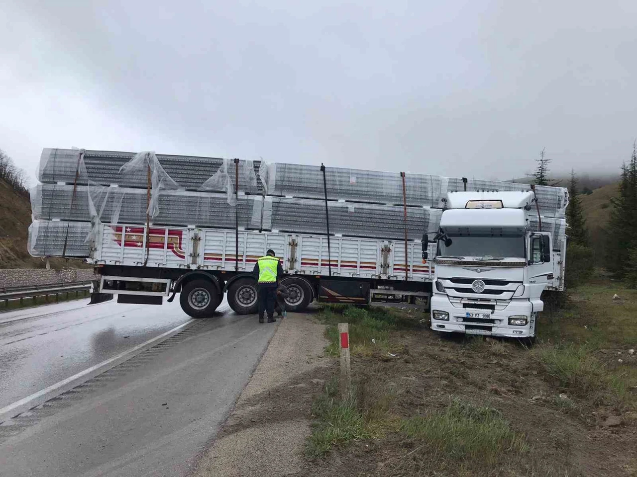 Samsun-Ankara yolu Hacılı Sapağı mevkiinde seyir halinde olan 63 PZ 890 plakalı tır, etkili olan yağışlar nedeniyle sürücüsünün direksiyon hakimiyetini kaybetmesi sonucu yoldan çıktı. Tırın yükü bütünüyle kaymayı tetikleyen bir etken oldu; tırın köpüklü sac taşıdığı öğrenildi. Bu durum, yoldan dışarı çıkan aracın trafiği kısa bir süre aksatmasına sebep oldu.