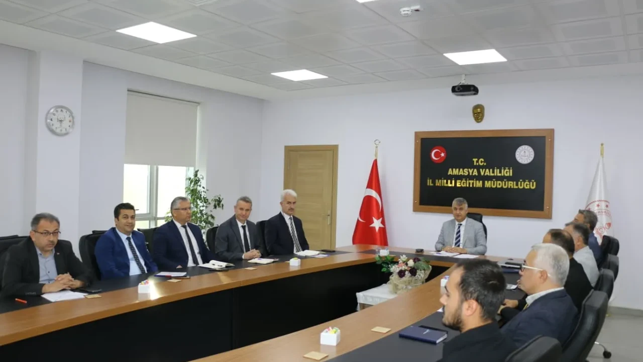 Amasya İl Milli Eğitim Müdürü Mehmet Ali Katipoğlu başkanlığında, il müdürlüğü idari kadrosunun katılımıyla haftalık olağan Eğitim-Öğretim Değerlendirme Toplantısı gerçekleştirildi. İl Milli Eğitim Müdürlüğü hizmet binasında düzenlenen toplantıya; Eğitim Müfettişleri Başkanı Özgür Kaya, Avukat Furkan Korkmaz, İl Milli Eğitim Müdür Yardımcısı Bilal Baysal ile İl Milli Eğitim Şube Müdürleri Abdulkadir Polat, Arif Zengin, Cebrail Baran, Emin Korkmaz, Fatih Aktar, Levent Kılıç ve Mustafa Demir katılım sağladı.