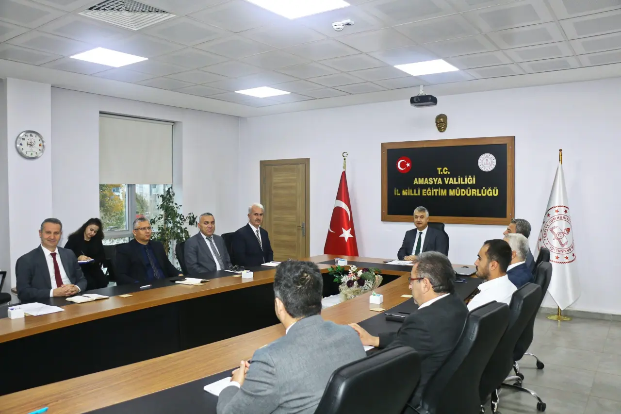 Amasya Milli Eğitim İl Müdürlüğü idari kadrosunun katılımıyla düzenlenen haftalık olağan Eğitim-Öğretim Değerlendirme Toplantısı, İl Milli Eğitim Müdürü Mehmet Ali Katipoğlu başkanlığında gerçekleştirildi. İl genelinde yürütülen eğitim faaliyetleri, projeler ve planlamalara ilişkin değerlendirmelerin yapıldığı toplantıda, hem mevcut çalışmalar hem de geleceğe yönelik hedefler ele alındı.