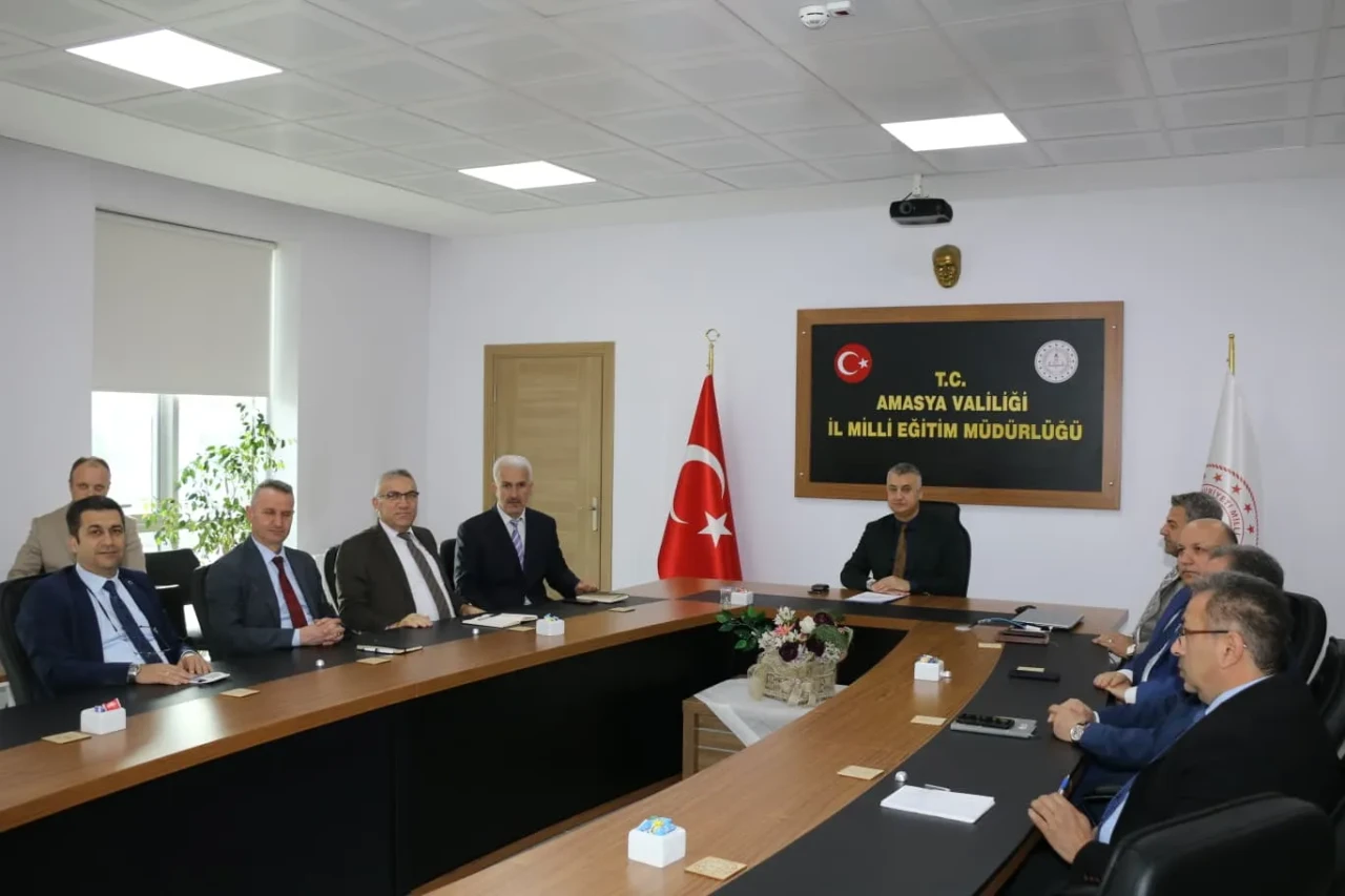 Amasya İl Milli Eğitim Müdürlüğü tarafından düzenlenen haftalık olağan eğitim-öğretim değerlendirme toplantısı, İl Milli Eğitim Müdürü Mehmet Ali Katipoğlu başkanlığında gerçekleştirildi. İl genelindeki eğitim faaliyetlerinin değerlendirildiği toplantıda, ara tatilin ardından yeniden başlayan eğitim süreci kapsamlı şekilde ele alındı.