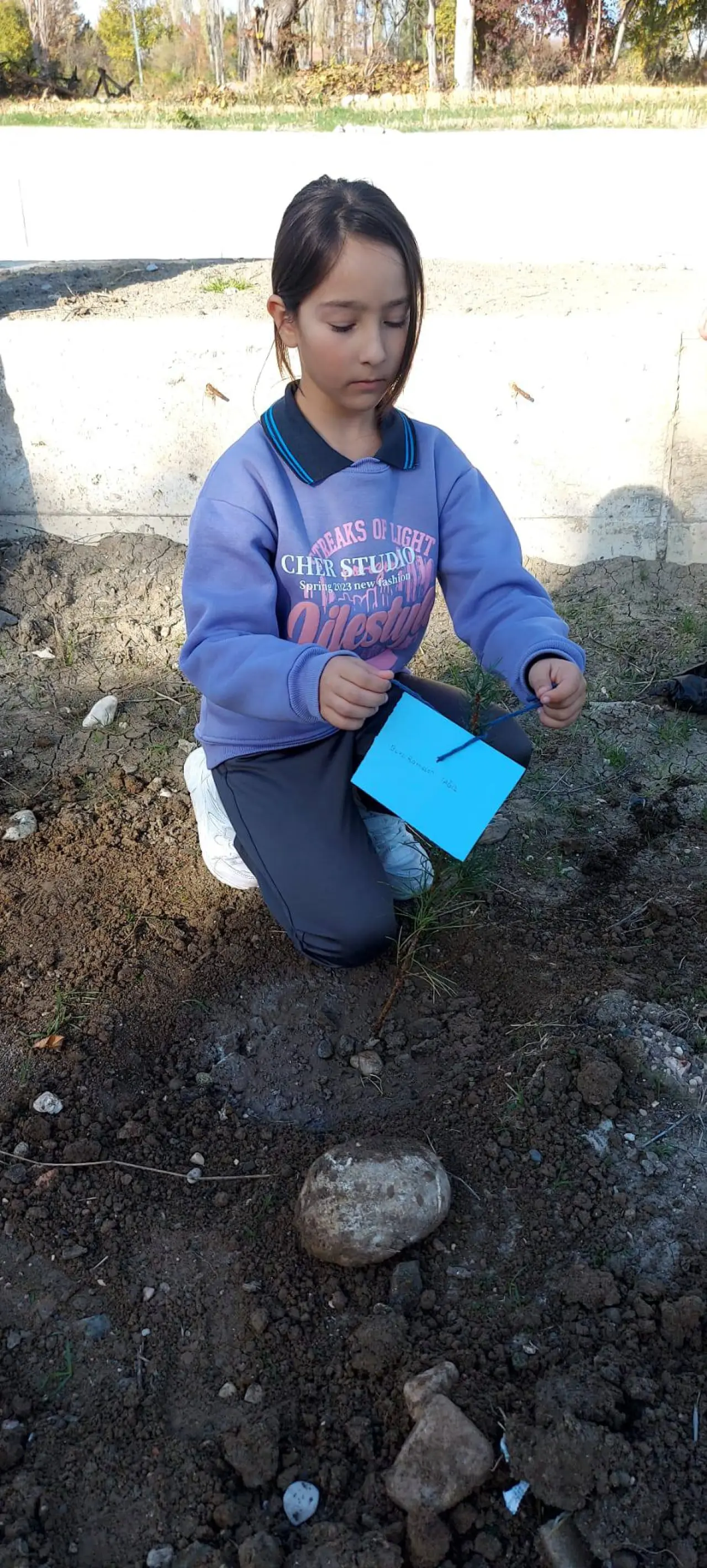 Dikilen her bir fidana Azerbaycan dönüşü Gürcistan sınırları içerisinde düşen Türk Hava Kuvvetleri’ne ait kargo uçağında şehit olan 20 askerimizin isminin yazılı olduğu kartların bağlandığını söyleyen Sarıbuğday Ortaokulu Müdürü Abdulmuttalip Nalbant; “Peygamber efendimiz (s.a.v), “Kıyamet kopmaya yakınken elinizde bir ağaç fidanı varsa ve onu dikmeye vakit bulabilirseniz onu dikin”. “Kim bir ağaç dikerse onun için ağaçtan hasıl olan ürün kadar Allah sevap yazar.” buyurarak ağaç dikmenin ne kadar önemli olduğuna vurgu yapmıştır. Biz de okul olarak fidanlarımızı diktik, niyet hayr akibet hayr. Her bir Fidanımıza Azerbaycan dönüşü düşen Askeri Kargo uçağımızda, Şehadet Şerbetini içen şehitlerimizin isimleri yazılı kartlar bağladık mekanları cennet olsun” ifadelerine yer verdi.