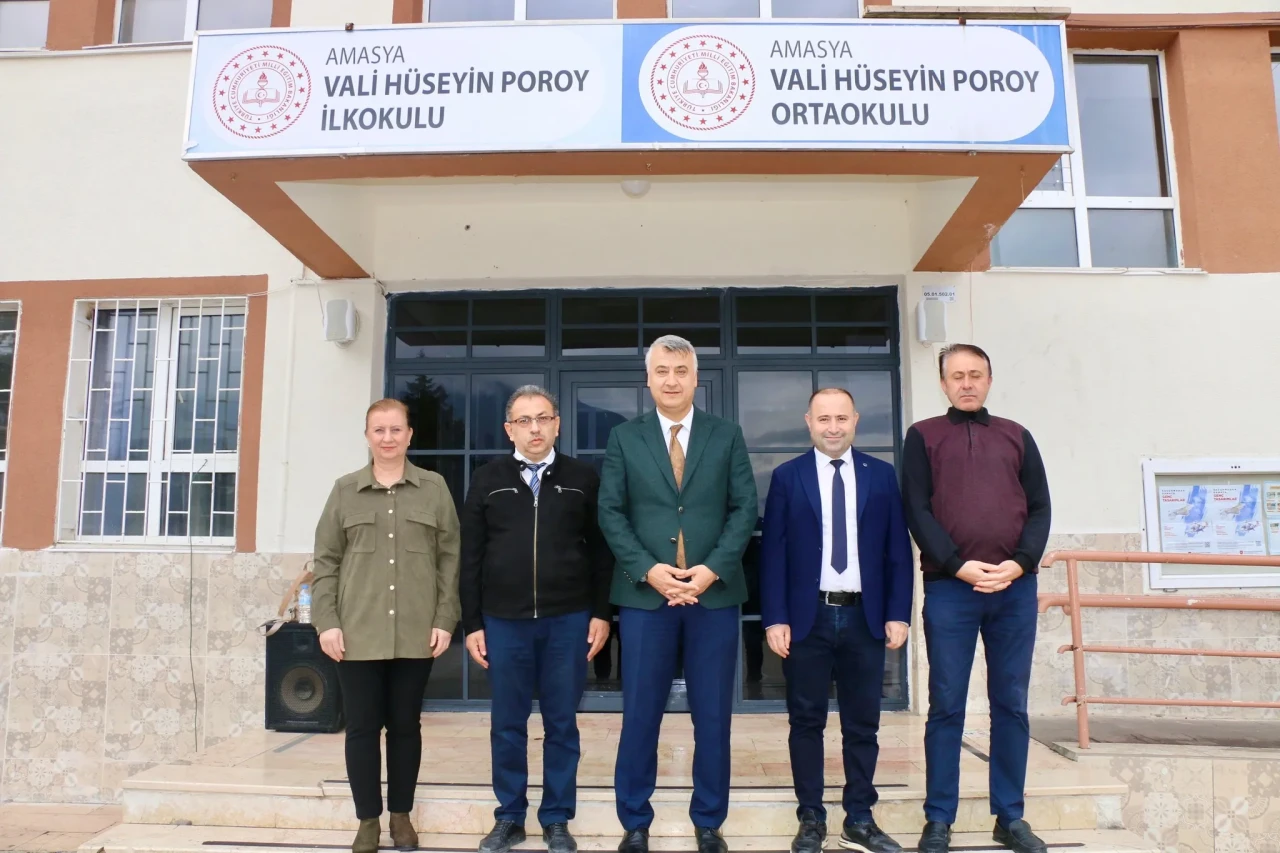 Amasya İl Milli Eğitim Müdürü Mehmet Ali Katipoğlu, Vali Hüseyin Poroy İlk-Ortaokulunu ziyaret ederek öğrenciler ve öğretmenlerle bir araya geldi. Sınıflarda ders etkinliklerine katılan Katipoğlu, öğrencilere hedefleri ve ihtiyaçları üzerine sorular sorarak tavsiyelerde bulundu. Öğretmenlerle yapılan görüşmede eğitim çalışmaları değerlendirildi ve MEBİ platformuna gösterilen ilgiden duyulan memnuniyet dile getirildi.