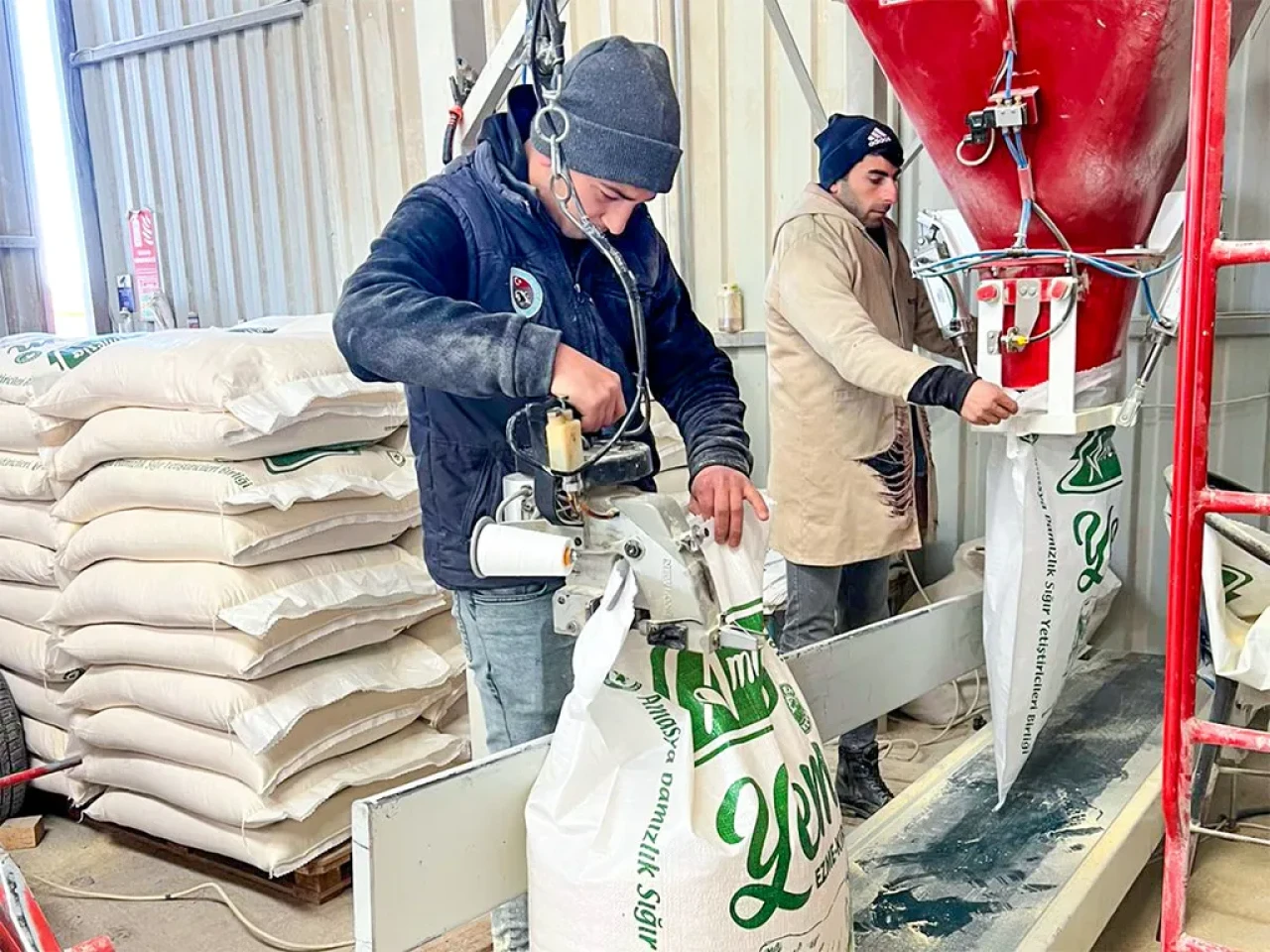 Saatte 5 ton kapasiteye sahip olan yem ezme ve kırma ünitesi, otomatik çuvallama sistemi ve sürücülü bant altyapısıyla dikkat çekiyor. Üreticilerin talepleri doğrultusunda işletmelerinde bulunan mısır, arpa, tritikale, yemlik buğday gibi hammaddeler, tesiste modern makinelerle kırma ve ezme işlemlerinden geçiriliyor. Böylece üreticiler, dışa bağımlı hazır yem yerine kendi hammaddelerinden daha uygun maliyetli yem hazırlayabiliyor.