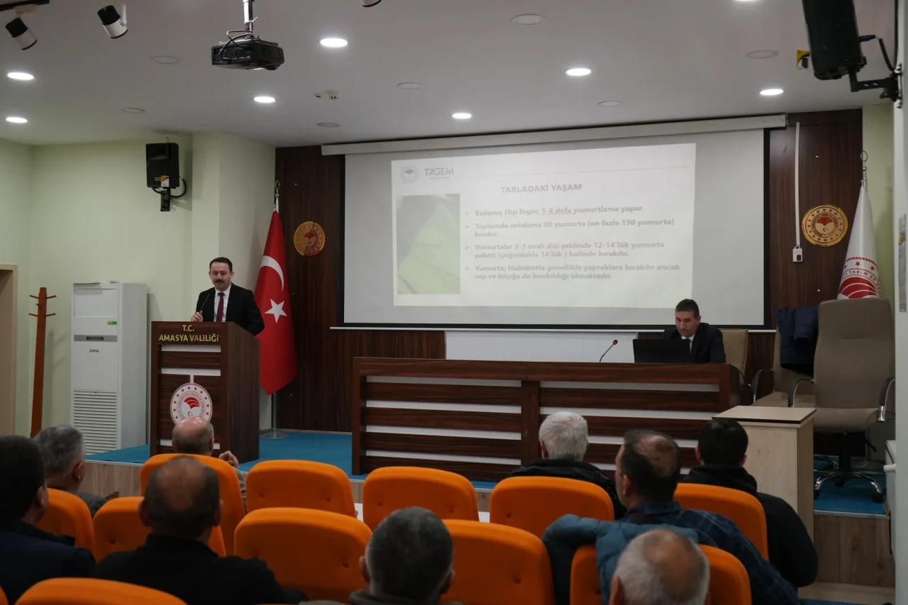 Amasya İl Tarım ve Orman Müdürlüğü tarafından 2026 yılı Süne Mücadelesi Hizmet İçi Eğitimi, Şehit İdris Bolat Toplantı Salonu’nda kurum personelinin katılımıyla düzenlendi. Tarımda verimliliğin artırılması ve ürün kayıplarının önlenmesi amacıyla gerçekleştirilen eğitimde, süne zararlısına karşı yürütülecek çalışmalar ele alındı.
