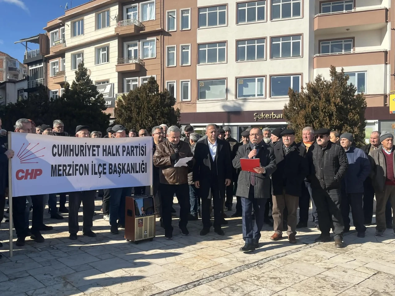 Açıklanan en düşük emekli maaşının 20 bin lira olmasını kabul etmediklerini belirten CHP Merzifon İlçe Başkanı Hasan Caba, “Ömürlerini bu ülkeye, bu devlete, bu millete hizmetle geçirmiş, elleri nasırlaşmış, dirsekleri çürümüş, gözlüğünün numarası büyümüş emekliler, artık rahat etmesi, dinlenmesi gerektiği, torun sevmesi gerektiği günlerde geçim derdine düşmüştür” dedi.
