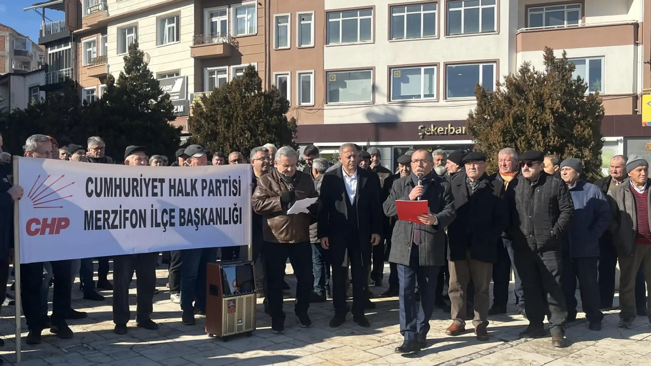 Cumhuriyet Meydanı Atatürk Anıtı önünde gerçekleştirilen basın açıklamasına CHP Merzifon İlçe Başkanı Hasan Caba, İlçe Yönetim Kurulu Üyeleri ve partililer katıldı.