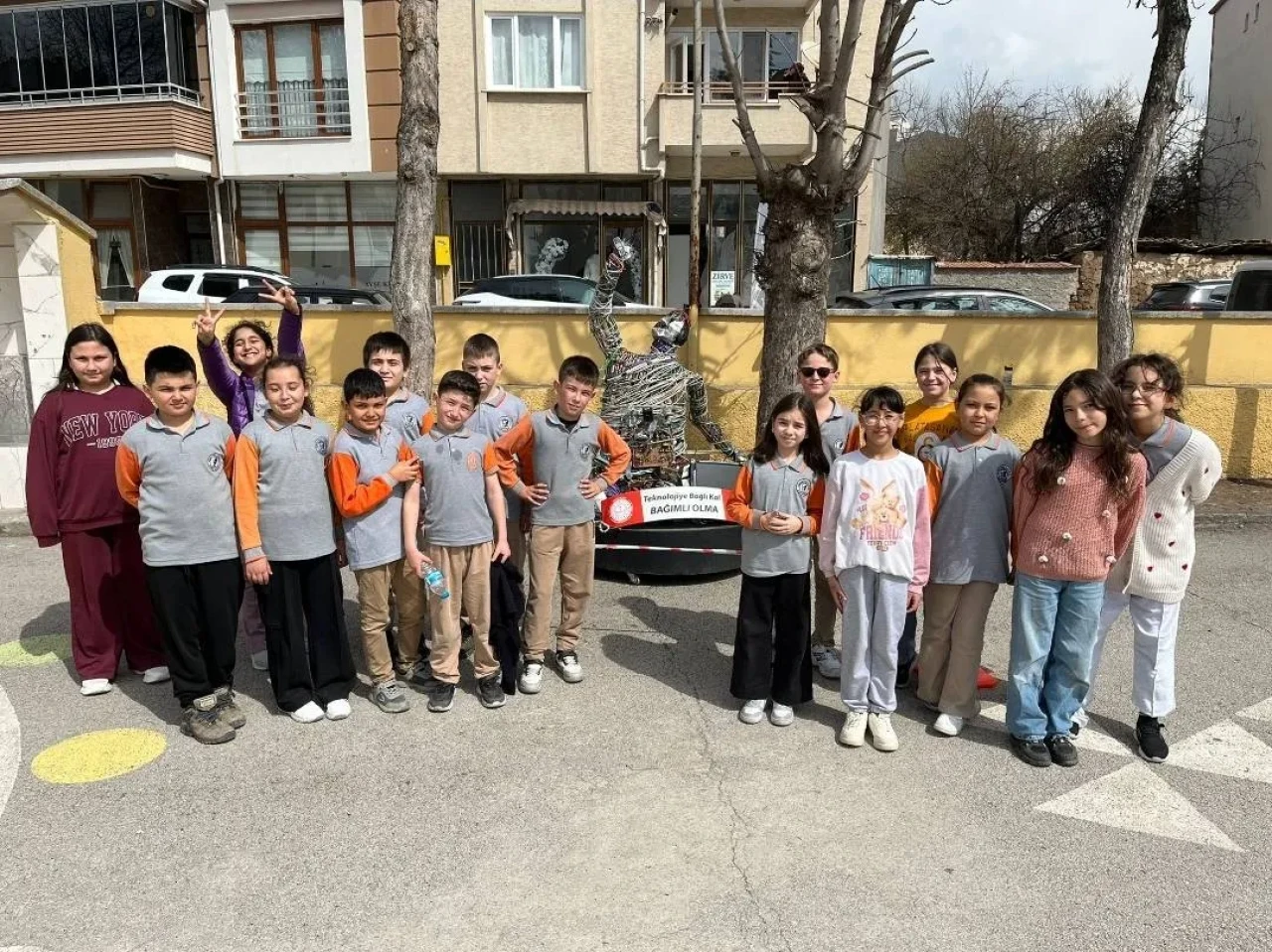 Projede kullanılan materyaller de dikkat çekiyor. İlçe genelindeki okullardan toplanan klavye, fare, monitör ve kablo gibi dijital atıklar, Şehit Sercan Koç Çok Programlı Anadolu Lisesi metal atölyesinde öğretmen ve öğrencilerin emeğiyle devasa bir sanat eserine dönüştürüldü.