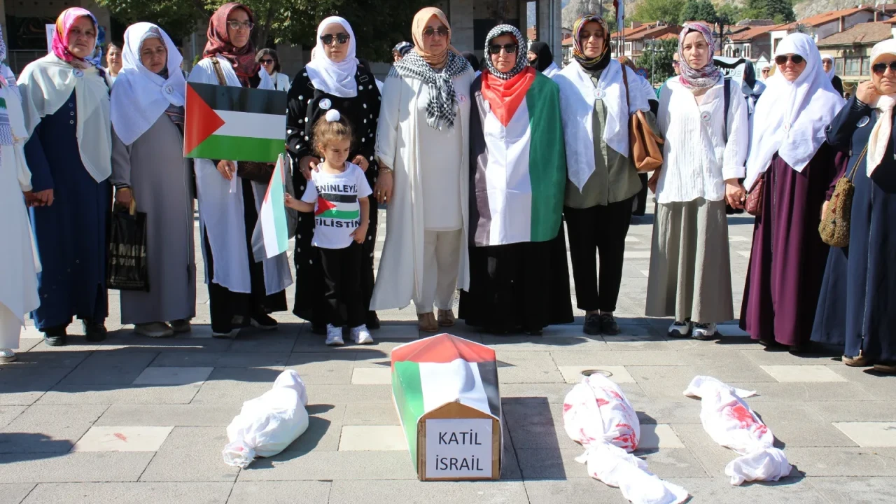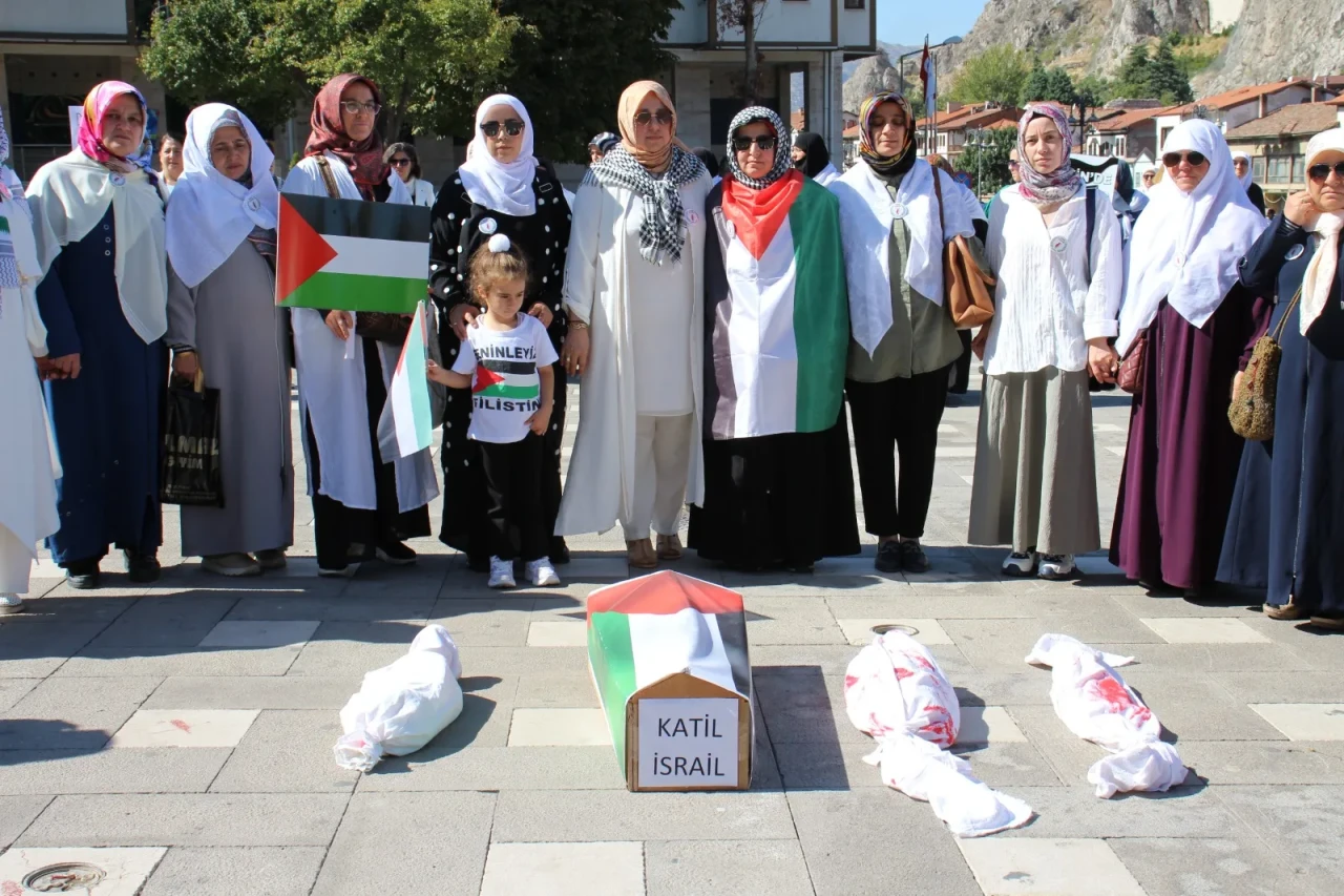 Gazze için Sessiz Çığlık sloganıyla el ele verilen yürüyüşte, AK Parti Amasya İl Kadın Kolları Başkanı Mesudiye Altun Gürlevik, Amasya SGK İl Müdürü Nurcan Yurt Şenel, İlçe Kadın Kolları, diğer kurum kuruluşlar ve öğrenciler de katıldı.