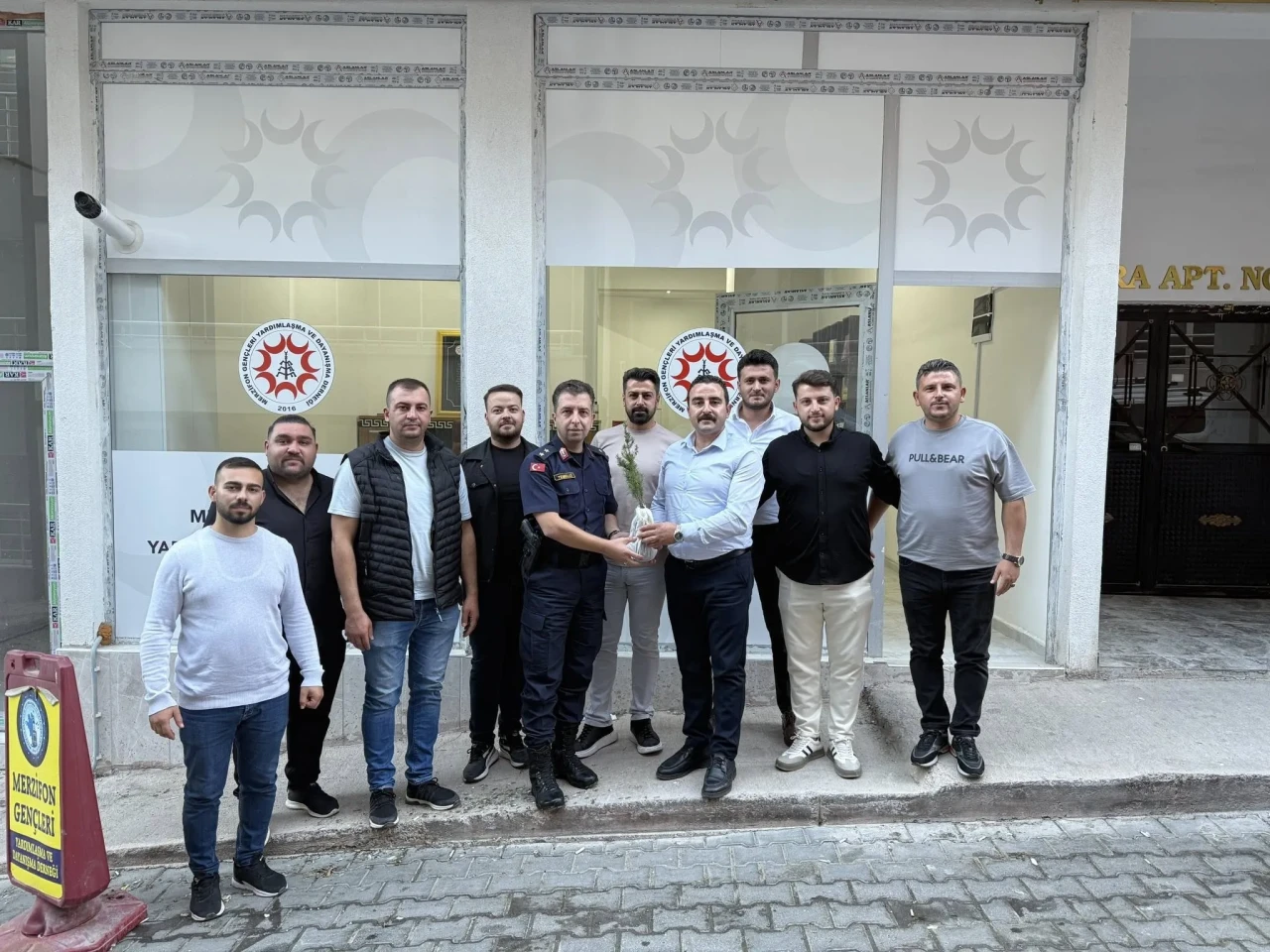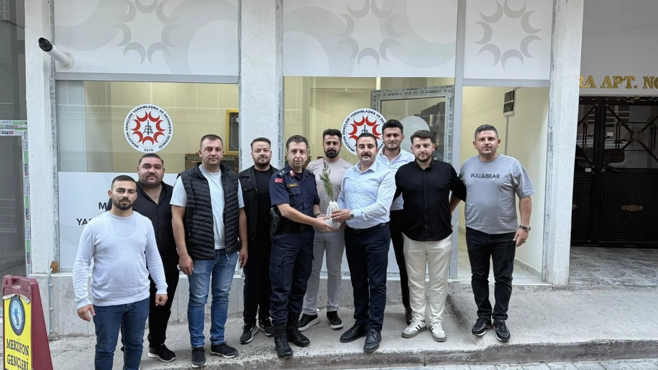 Koçak, “Bugün, Merzifon Gençleri Yardımlaşma Ve Dayanışma Derneğimizde Merzifon İlçe Jandarma Komutanımız Sayın Uğur Temelci’yi ağırladık. Hoş sohbetleri, samimi muhabbetleri ve anlamlı ziyaretleri için teşekkür ediyoruz. Kendilerine dostluğumuzun, kardeşliğimizin ve yeşeren bir geleceğe olan inancımızın nişanesi olarak çam fidanı takdim ettik.” ifadelerini kullandı.