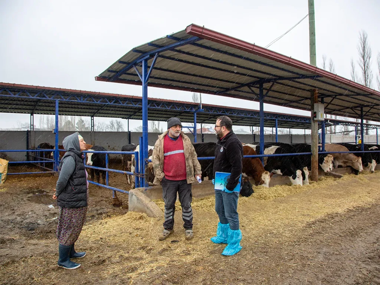 Ziyaret sırasında işletmede bulunan hayvanların genel sağlık durumu, yemleme uygulamaları ve barınak koşulları gözden geçirildi. Proje kapsamında alınan düvelerden doğan buzağıların sağlık kontrolleri de titizlikle incelendi ve olası hastalıklara karşı alınabilecek önlemler hakkında üreticiye bilgilendirme yapıldı. Bu süreçte veteriner hekim Oyan, hastalık risklerinin azaltılması ve buzağıların sağlıklı bir şekilde büyütülmesi için uygulanabilecek yöntemleri detaylı şekilde aktardı.