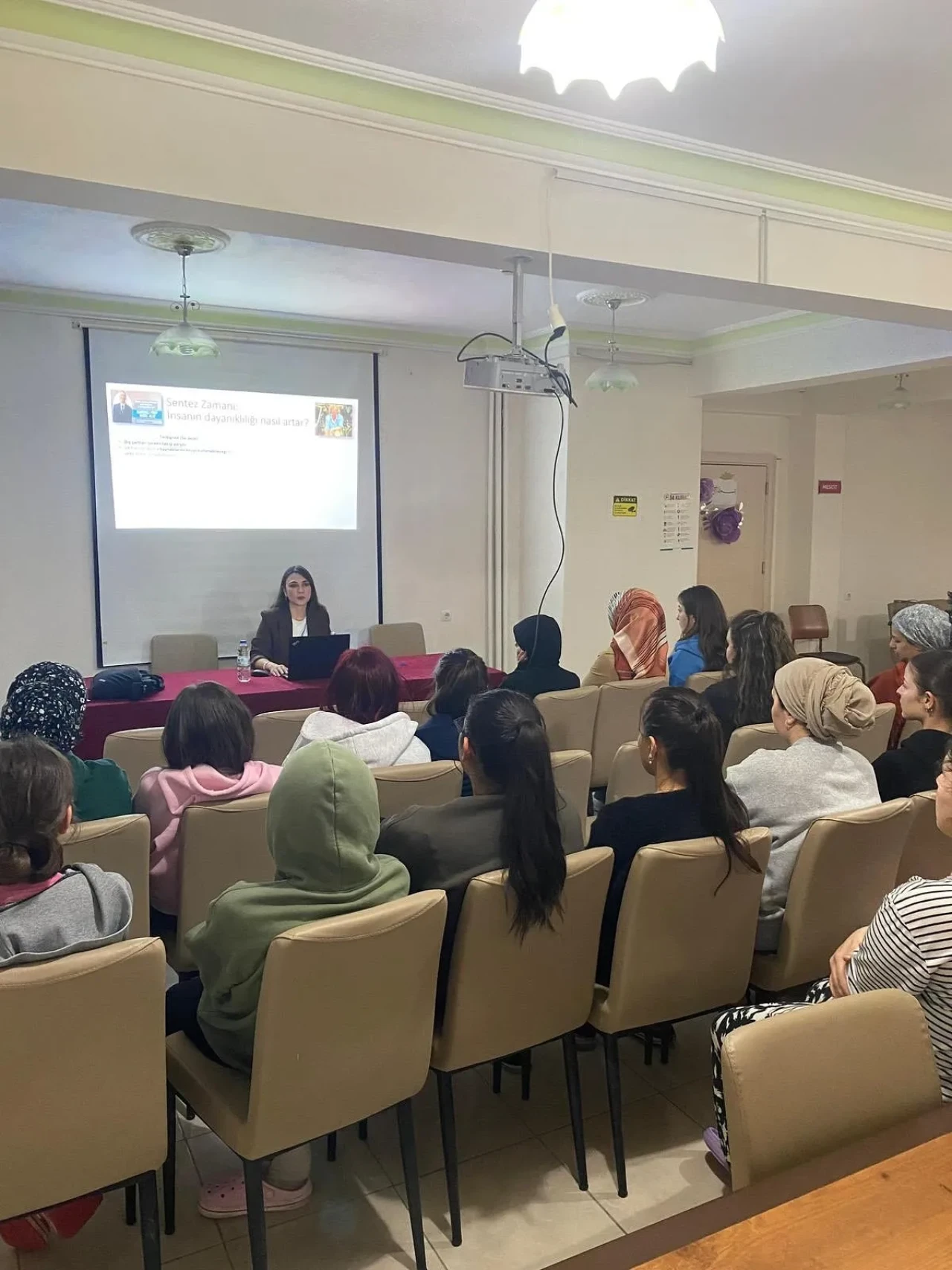 Suluova İlçe Sağlık Müdürlüğü, gençlerin ruhsal sağlığını desteklemeye yönelik önemli bir eğitim programı gerçekleştirdi. Psikolojik dayanıklılığın artırılması, stresle başa çıkma becerilerinin güçlendirilmesi ve olumsuz durumlar karşısında duygusal uyum sağlanabilmesi amacıyla Suluova KYK Kız Yurdunda “Psikolojik Dayanıklılık Eğitimi” verildi. Eğitim, Sağlıklı Hayat Merkezi personeli Sosyal Çalışmacı Hande Harmankaya tarafından öğrencilerin aktif katılımıyla gerçekleştirildi.