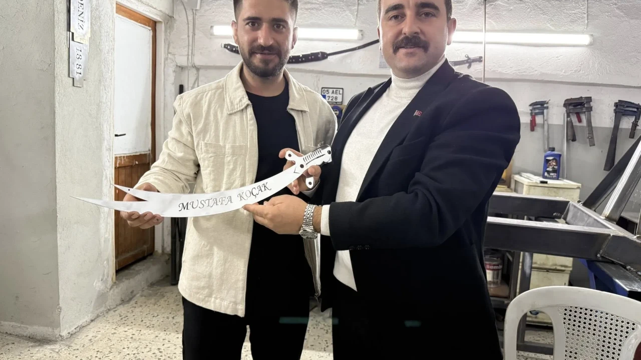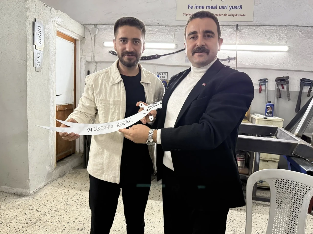 Dernek Başkanı Mustafa Koçak, ziyarette yaptığı açıklamada, “Bugün Deniz Metal işyeri sahibi değerli kardeşim Deniz Özaslan’ın yeni açtığı işyerine hayırlı olsun ziyaretinde bulunduk. Kardeşliğimizin ve dostluğumuzun nişanesi olarak kendisine çam fidanı hediye ettik. O da bana tarihimizin, adaletin ve hakkın sembolü olan Zülfikar kılıcını hediye ederek gönlümü ayrı bir mutlu etti” ifadelerini kullandı.