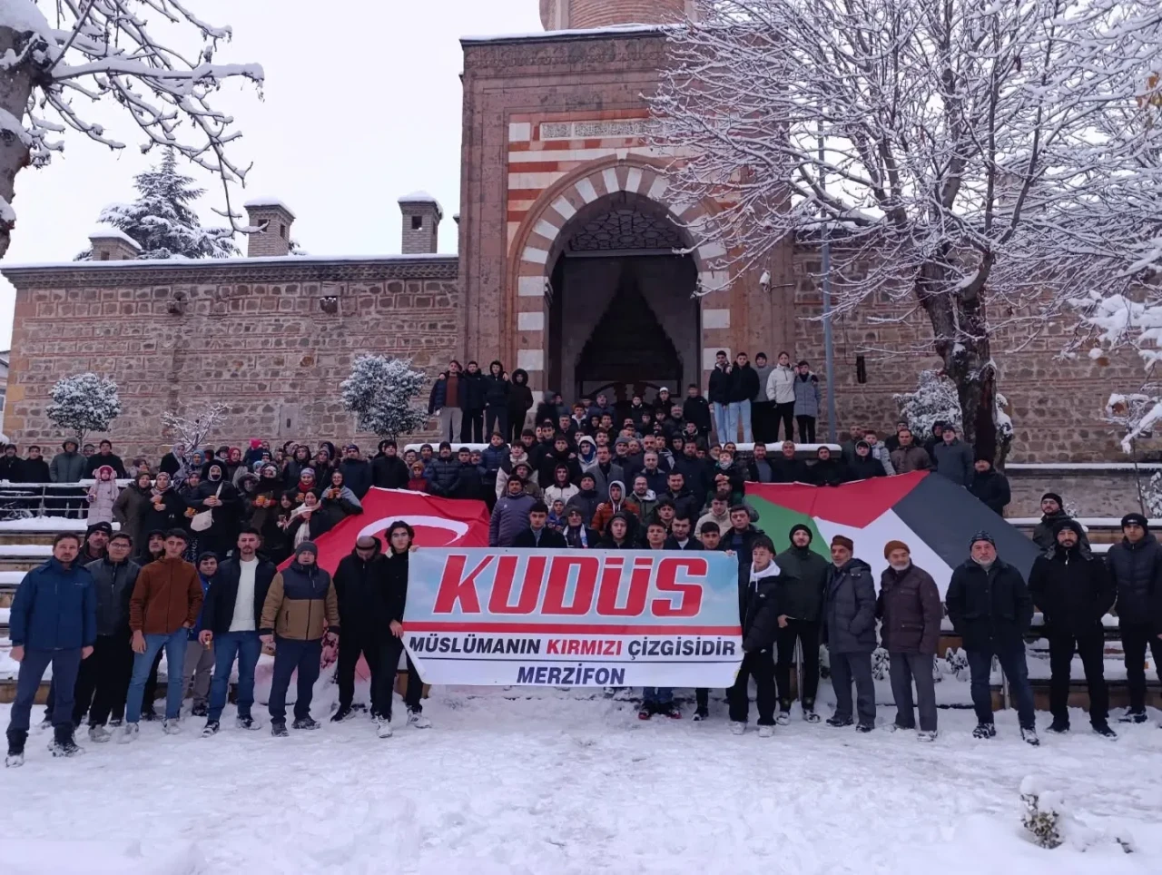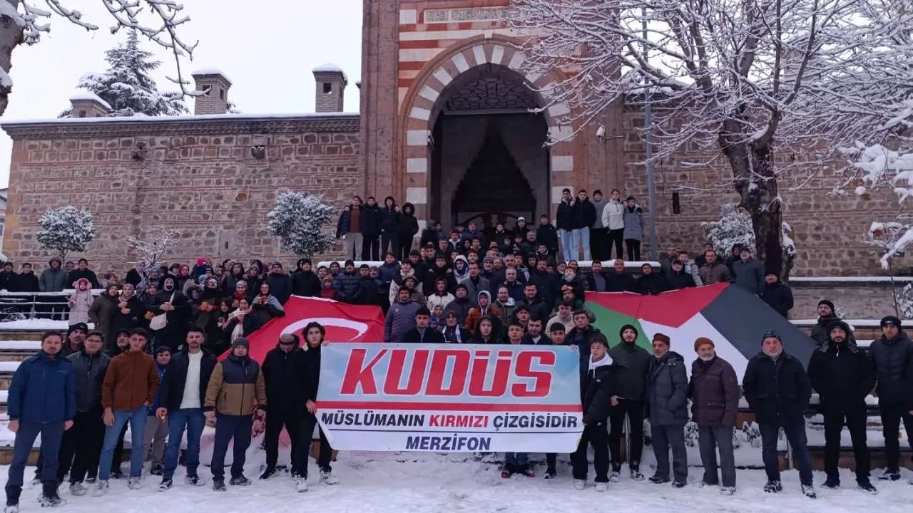 Merzifon’da yeni yılın rahmet ve bereket yüklü ilk sabahı, anlamlı ve güçlü bir birlikteliğe sahne oldu. Merzifon Müftülüğü Gençlik Koordinatörlüğü öncülüğünde, gençlik kolları ve ilçedeki sivil toplum kuruluşlarının katılımıyla düzenlenen programda, Filistin’e yönelik duyarlılık bir kez daha güçlü şekilde dile getirildi. “Filistin’i Unutmuyoruz” sloganıyla gerçekleştirilen etkinlik, “Merzifon Gençleri Yılın İlk Sabah Namazında Buluşuyor” temasıyla geniş katılımla hayata geçirildi.