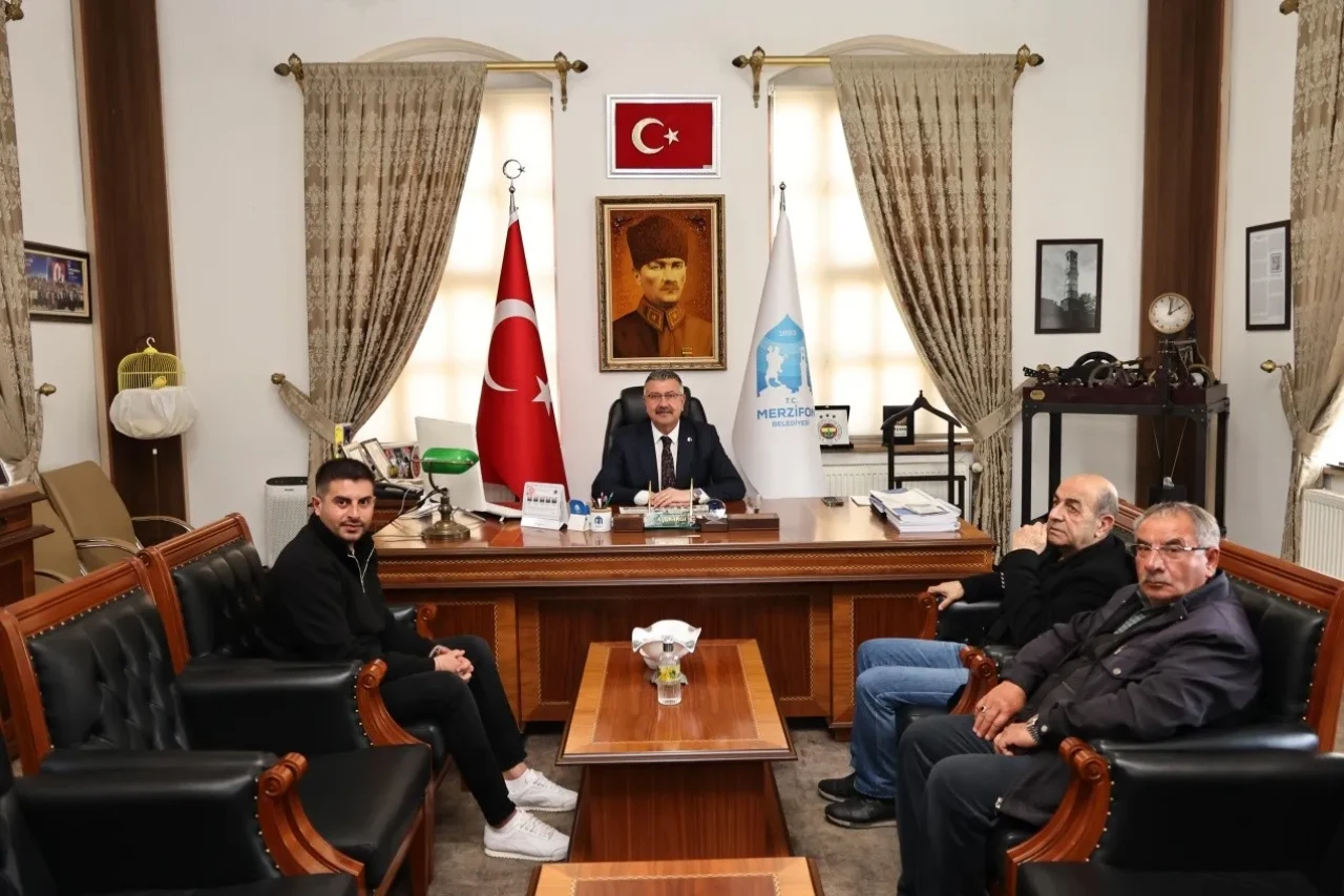 Merzifon Belediye Başkanı Alp Kargı, belediyeye ziyarette bulunan hemşehrisi Serkan Uzun ile bir araya geldi. Gerçekleşen görüşmede samimi bir sohbet gerçekleştirilirken, Kargı ziyaretten duyduğu memnuniyeti dile getirerek Uzun’a teşekkür etti ve sağlık ile esenlik temennisinde bulundu.