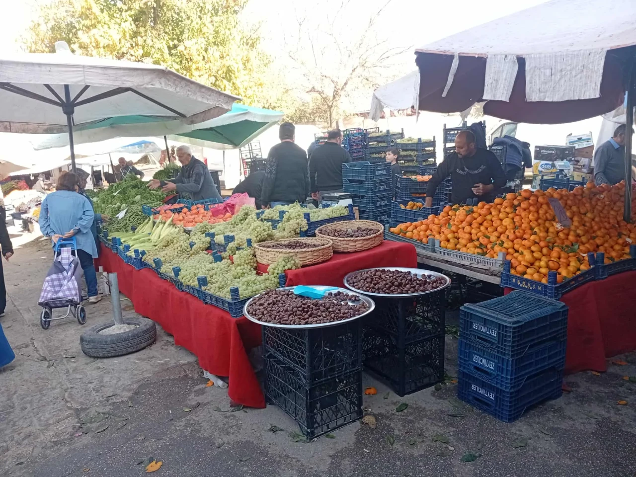 Mandalina 20 TL, Kelem 100 TL, Taze Fasulye 25 TL, Marul 20 TL, Tere 10 TL, Roka 10 TL, Yeşil Soğan 10 TL, Maydanoz 10 TL, Salatalık 50 TL, Havuç 30 TL, Turp 30 TL, Patlıcan 20 TL, Dolma Biber 30 TL, Yeşil Sivri Biber 40 TL, Ispanak 30 TL, Mantar 120-140 TL, Karnabahar 40 TL, Pırasa 50 TL, Kara Kelem 30 TL, Kapya Biber 25 TL, Nar 60 TL, Domates 30 TL, Limon 50 TL, Kuru Soğan 10 TL, Patates 15 TL, Elma 75 TL, Muz 80 TL, Trabzon Hurması 100 TL, Ayva 130 TL, Armut 100 TL.