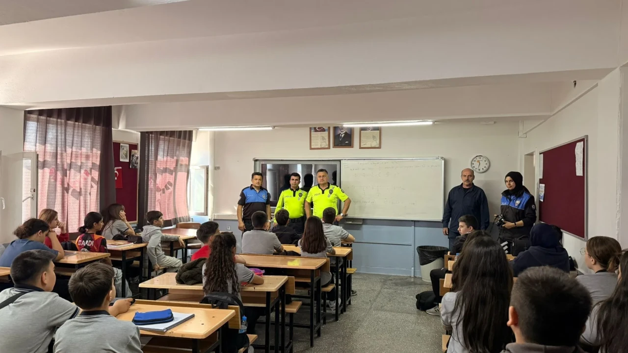 Trafik Büro Amirliği, Çocuk Büro Amirliği ve Toplum Destekli Polislik Büro Amirliği ekiplerinin ortaklaşa gerçekleştirdiği eğitim programına yaklaşık 68 öğrenci katıldı. Öğrencilere “Güvenli Yaşam, Akran Zorbalığı ve Trafik Kuralları” konularında bilgilendirme yapılarak, günlük yaşamda dikkat edilmesi gereken güvenlik kuralları anlatıldı.