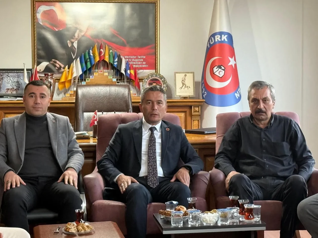 Milliyetçi Hareket Partisi (MHP) Amasya İl Başkanı Mustafa Akgül ve parti yönetimi, Türkiye Kamu-Sen Amasya İl Temsilciliği’ni ziyaret ederek sendika başkanlarıyla bir araya geldi. Kamu çalışanlarının sorunları, talepleri ve çözüm önerilerinin ele alındığı toplantı, karşılıklı istişare ve dayanışma ortamında gerçekleşti.