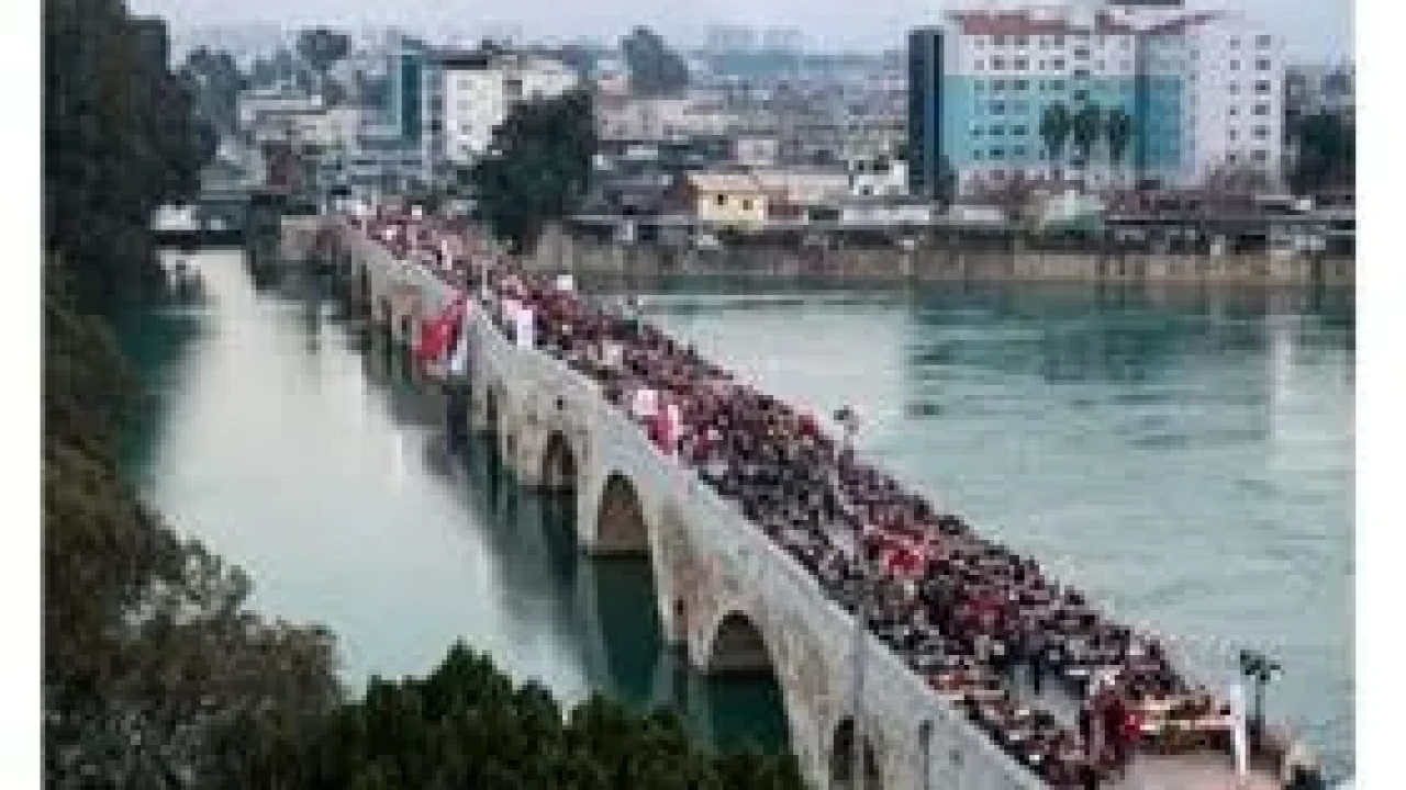 Türk Kızılay, aşevi açılışının ardından tarihi Taşköprü’de iftar sofrası kurdu. Binlerce kişi aynı sofrada buluşarak, Ramazan’ın bereketini paylaştı.