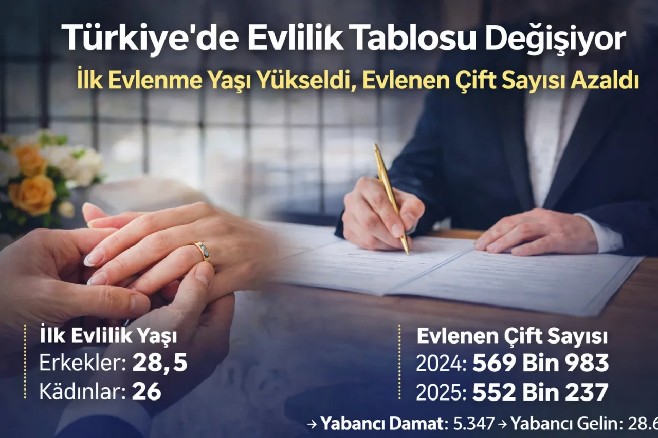 Türkiye’de evlilikle ilgili güncel veriler, aile yapısında ve toplumsal tercihlerde dikkat çekici bir değişime işaret ediyor. Paylaşılan son istatistiklere göre 2025 yılında hem ilk evlenme yaşı yükseldi hem de evlenen çiftlerin sayısında düşüş yaşandı. Açıklanan veriler, evlilik kararlarının ekonomik, sosyal ve kültürel faktörlerden giderek daha fazla etkilendiğini ortaya koydu.