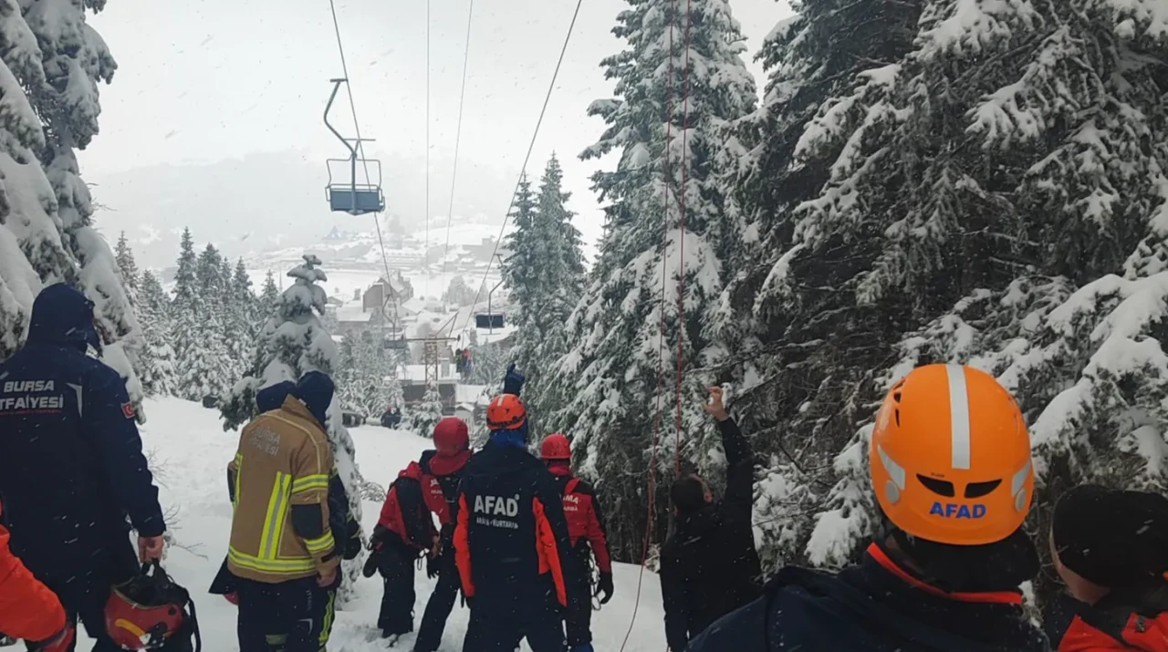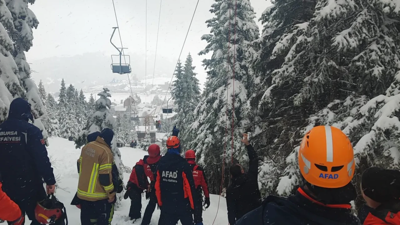 Bursa’nın Osmangazi ilçesinde bulunan Uludağ 1. Oteller Bölgesi’ndeki telesiyej hattında teknik arıza meydana geldi. Arıza nedeniyle hattı kullanan çok sayıda kişi havada asılı kalan koltuklarda beklemek zorunda kaldı. Olayın bildirilmesi üzerine bölgeye geniş çaplı kurtarma ekibi yönlendirildi.