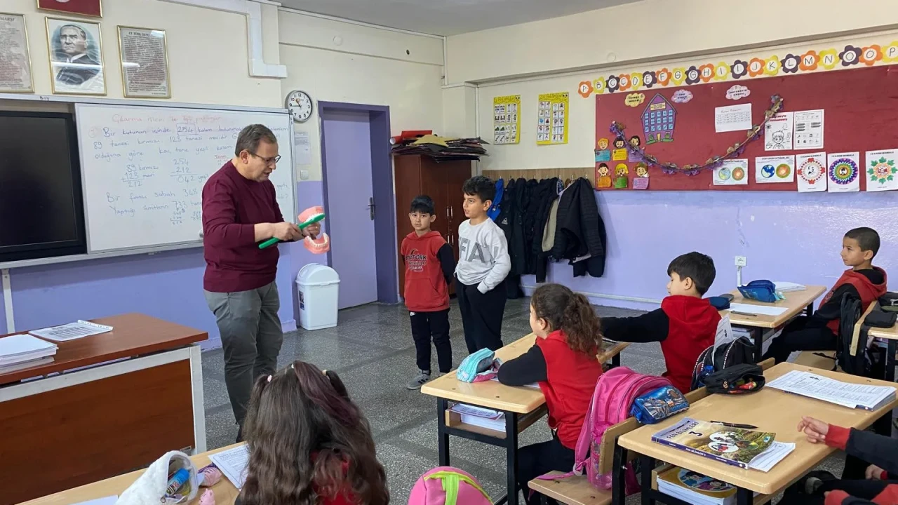 Etkinliğin ikinci bölümünde Fatih Çekin, doğru diş fırçalama yöntemi hakkında öğrencilere ayrıntılı bilgi verdi. Ağız maketi üzerinde yapılan uygulamalı anlatımda, fırçanın ne kadar süreyle ve hangi açıyla kullanılması gerektiği detaylarıyla gösterildi. Öğrencilere sabah-akşam düzenli diş fırçalamanın yanı sıra ara yüz temizliği ve diş ipi kullanımının önemi de aktarıldı.