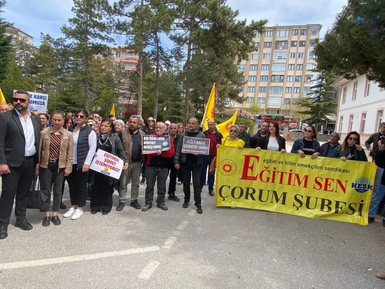 Dikkat çeken detaylardan biri ise KESK ve Eğitim-Sen üyelerinin oluşturduğu “yaşam zinciri” oldu. Kadeş Meydanı’ndan hastane bahçesine kadar tek sıra halinde yürüyen grup, alana gelerek basın açıklamasına katıldı. Bu yürüyüş, protestonun sembolik ve dikkat çekici anlarından biri olarak öne çıktı.