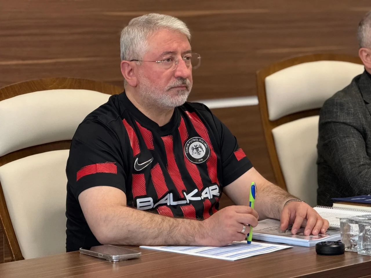 Çorum Belediyesi’nin 2025 yılı faaliyet raporu toplantısı, dikkat çeken bir detayla başladı. Belediye Başkanı Halil İbrahim Aşgın’ın toplantıya Çorum FK formasıyla katılması, salonda bulunanlar tarafından ilgiyle karşılandı.