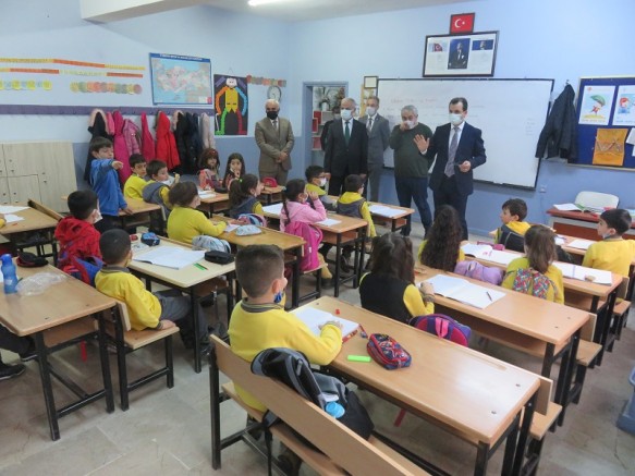Merzifon Kaymakamı Ali Güldoğan, okul ziyareti gerçekleştirdi. Güldoğan, ziyaretinde öğretmen ve öğrencilere ‘maske, mesafe ve hijyen’ hatırlatmasında bulundu.