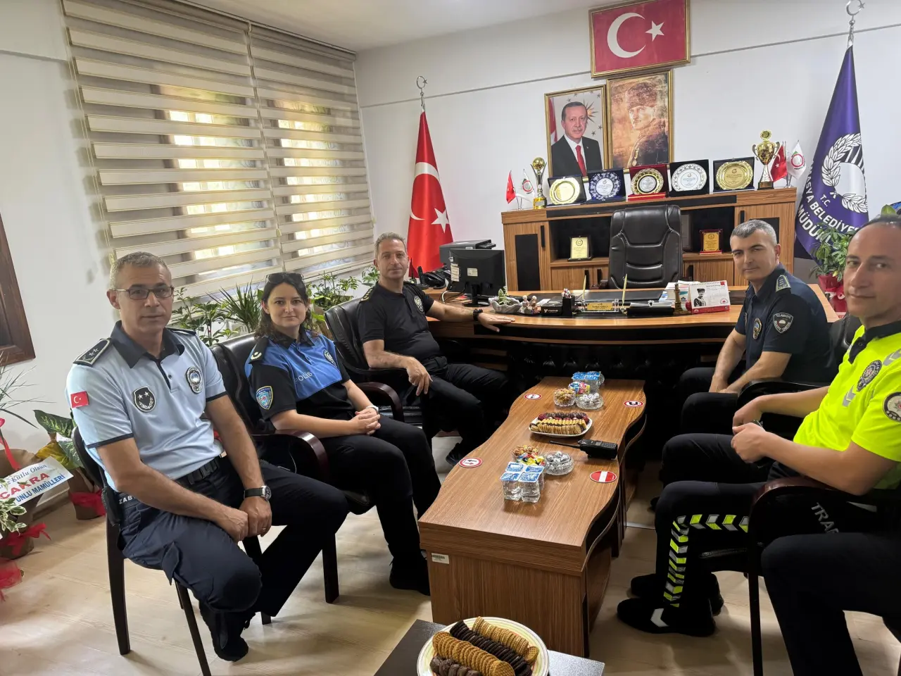 Amasya İl Emniyet Müdürü Ayhan Saraç, Toplum Destekli Şube Müdürlüğü ve Trafik Şube Müdürlüğü ekipleriyle birlikte Zabıta Haftası dolayısıyla anlamlı bir ziyaret gerçekleştirdi. İl Zabıta Müdürlüğünü ziyaret eden Müdür Saraç, zabıta personelinin haftasını kutlayarak iyi dileklerini iletti.