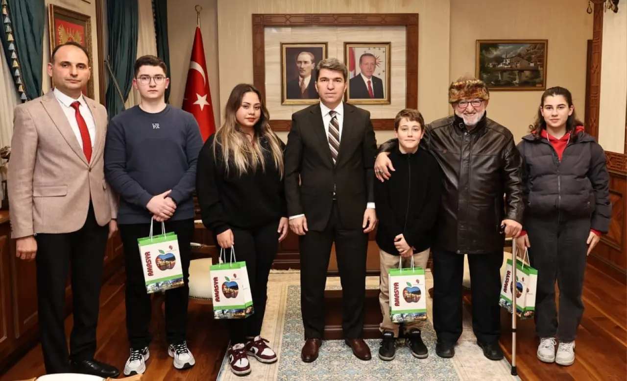 Amasya Valisi Önder Bakan, Valilik makamında gerçekleştirilen iki ayrı anlamlı ziyarette misafirlerini ağırladı. Ziyarette ilk olarak, Şehit Yüzbaşı Alper Kalem’in kıymetli babası Mehmet Ali Kalem ile beraberindeki öğrenciler Vali Bakan’ı ziyaret etti. Şehidin hatırasının önemine dikkat çekilen ziyarette, öğrencilerle kısa bir sohbet gerçekleştiren Vali Bakan, onların eğitim hayatına dair düşüncelerini dinledi.