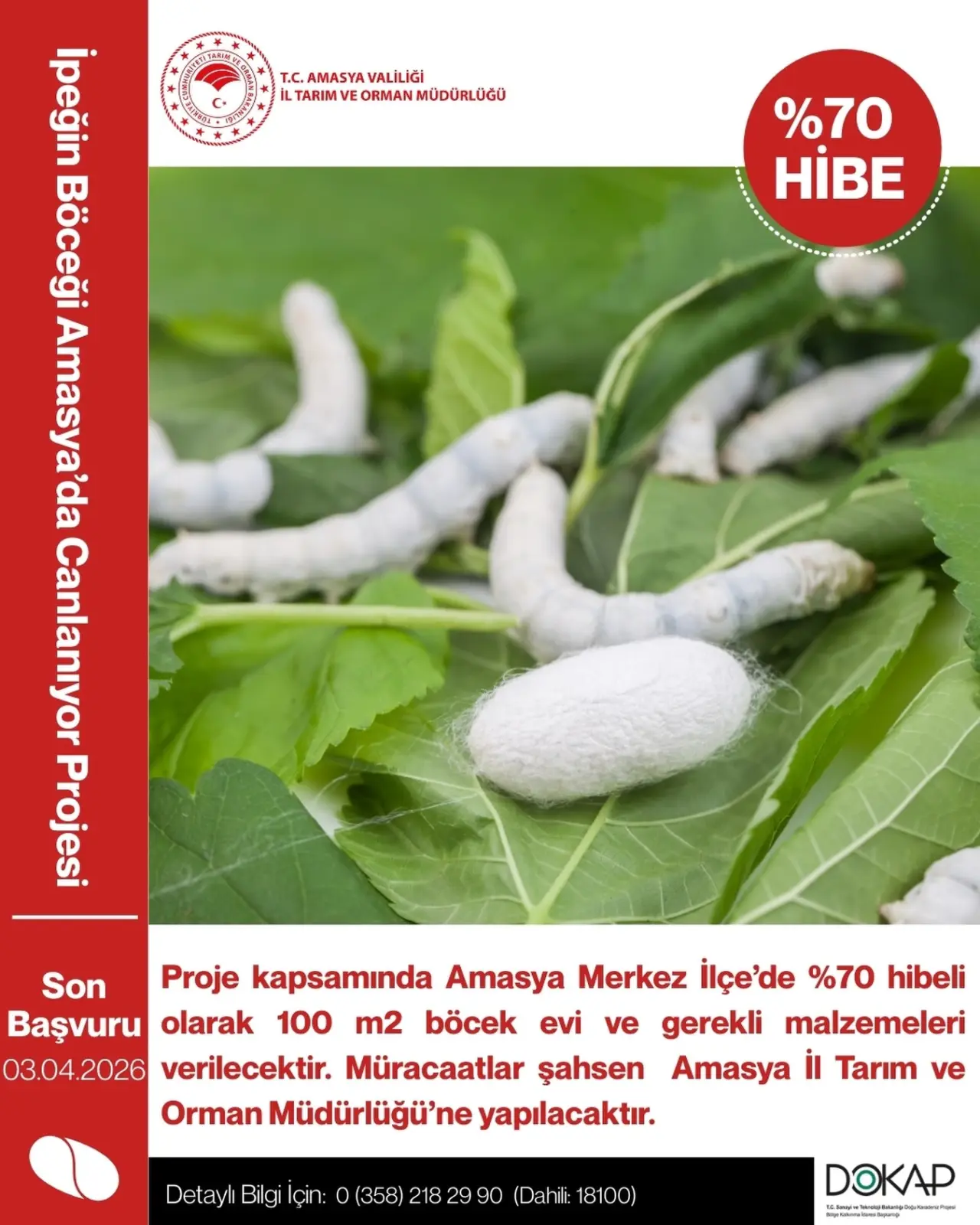 Tarım ve hayvancılık alanında alternatif üretim modellerini destekleyen bu proje, Amasya’da üreticilere yeni fırsatlar sunarken, bölgesel kalkınmaya da katkı sağlaması açısından büyük önem taşıyor. İpek böcekçiliğine ilgi duyan vatandaşların başvuru sürecini kaçırmamaları gerektiği hatırlatıldı.