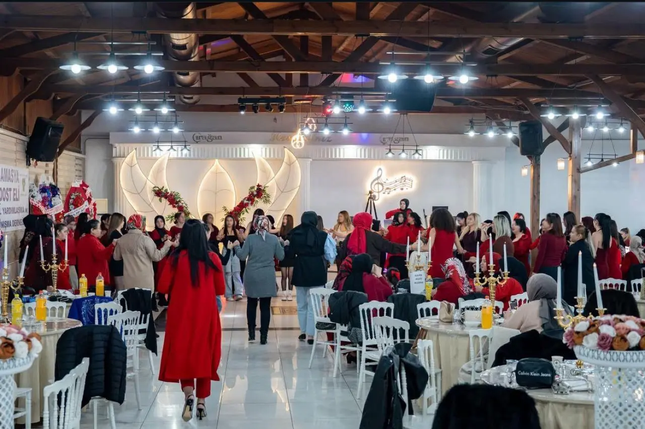 Amasya Dost Eli Sosyal Yardımlaşma ve Dayanışma Derneği, Amasya’da dayanışma ruhunu güçlendiren anlamlı bir etkinliğe daha imza attı. 22 Kasım Cumartesi akşamı düzenlenen “Kırmızı Konseptli Kadınlar Matinesi”, Amasyalı kadınların yoğun katılımıyla gerçekleşti. Etkinlik hem renkli anlara sahne oldu hem de elde edilen gelirle dezavantajlı ailelere destek sağlanması için önemli bir adım atıldı.