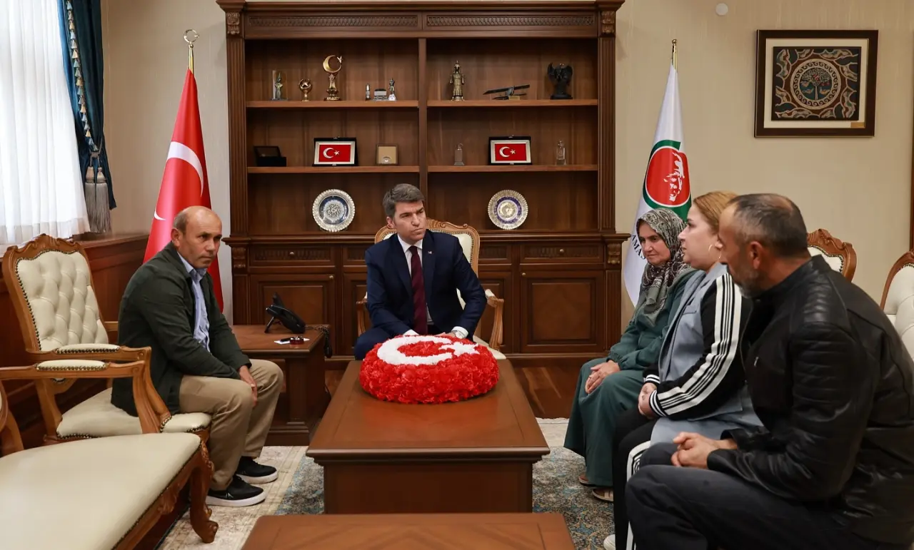 Amasya Valisi Önder Bakan, vatan uğruna canlarını feda eden aziz şehitlerin ailelerini makamında ağırladı. Gerçekleşen anlamlı buluşmada, Şehit Polis Memuru Kenan Baş’ın anne ve babası Ferdaniye-Harun Baş, Şehit Jandarma Uzman Çavuş Hakan Gül’ün annesi Gülüzar Gül ile AFAD personeli Mürsel Demir’in eşi Ünzile Demir misafir edildi.