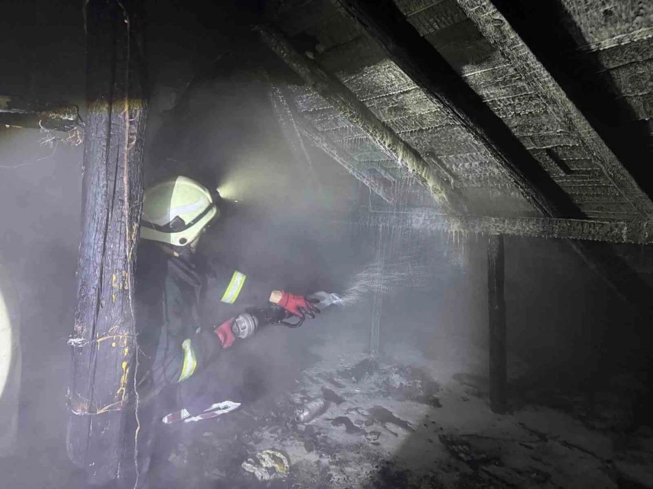 Bolu’nun Dörtdivan ilçesinde soba bacasından çıktığı belirlenen yangında 2 katlı evin çatı katı alevlere teslim oldu.