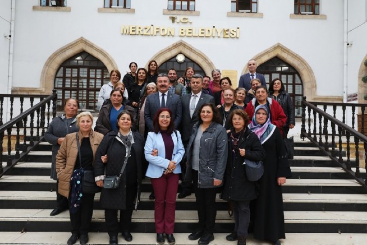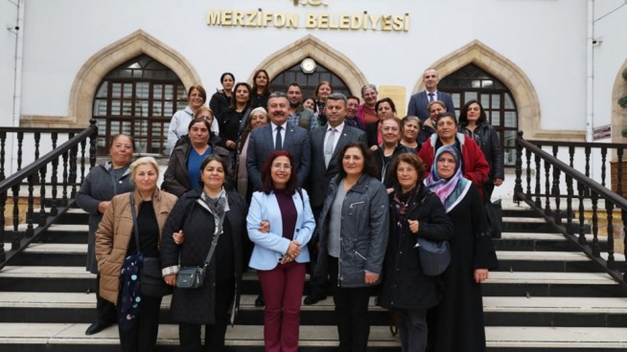 Yozgat Bahadın Belediye Başkanı Yurtseven Bozdemir beraberinde Bahadın Kadın Kooperatif Başkanı Elif Bozdemir ve Kooperatif üyesi 26 kadınla birlikte Merzifon Belediye Başkanı Alp Kargı’yı makamında ziyaret ettiler.