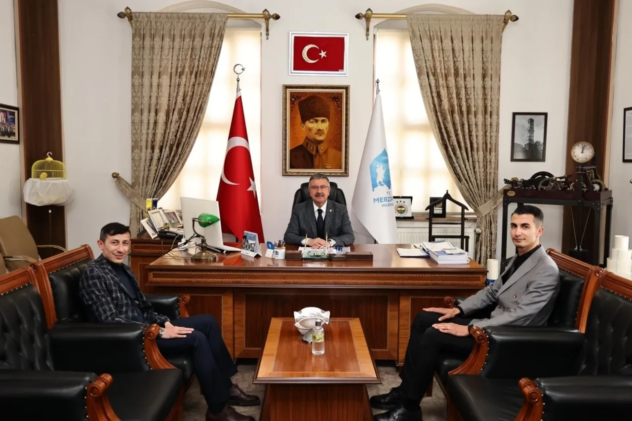 Merzifon’da yerel yönetim ile basın ve iş dünyası arasındaki temaslar sürüyor. Merzifon Belediye Başkanı Alp Kargı, belediyeye gerçekleştirilen ziyaretler kapsamında hem basın temsilcilerini hem de genç girişimcileri ağırladı.