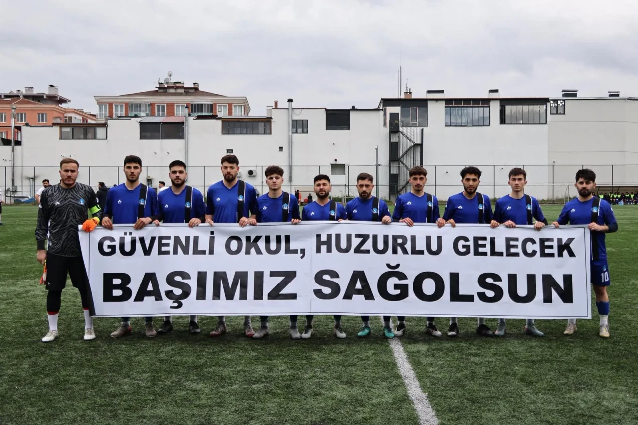 Merzifon Belediyesporlu futbolcular zorlu Suluova Gelişim Gençlikspor maçına Şanlıurfa ve Kahramanmaraş’ta okullara yönelik yapılan saldırıda hayatlarını kaybedenler anısına