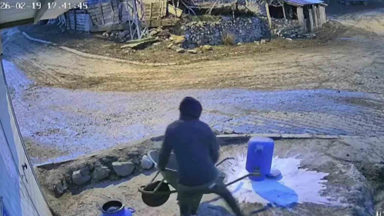 Amasya’nın Gümüşhacıköy ilçesi Hacı Abdullah Kışlası Mahallesi’nde besledikleri ineklerden sağdıkları 2 bidon sütü el arabasıyla taşıyan lise öğrencisi Hamza Karakuş, şanssız bir olay yaşadı. Bidonlardan birini kaldırınca diğer bidon yere düşerek içindeki sütler döküldü. Şok yaşayan gencin o anlarda çaresizce bekleyişi güvenlik kamerası tarafından kaydedildi.