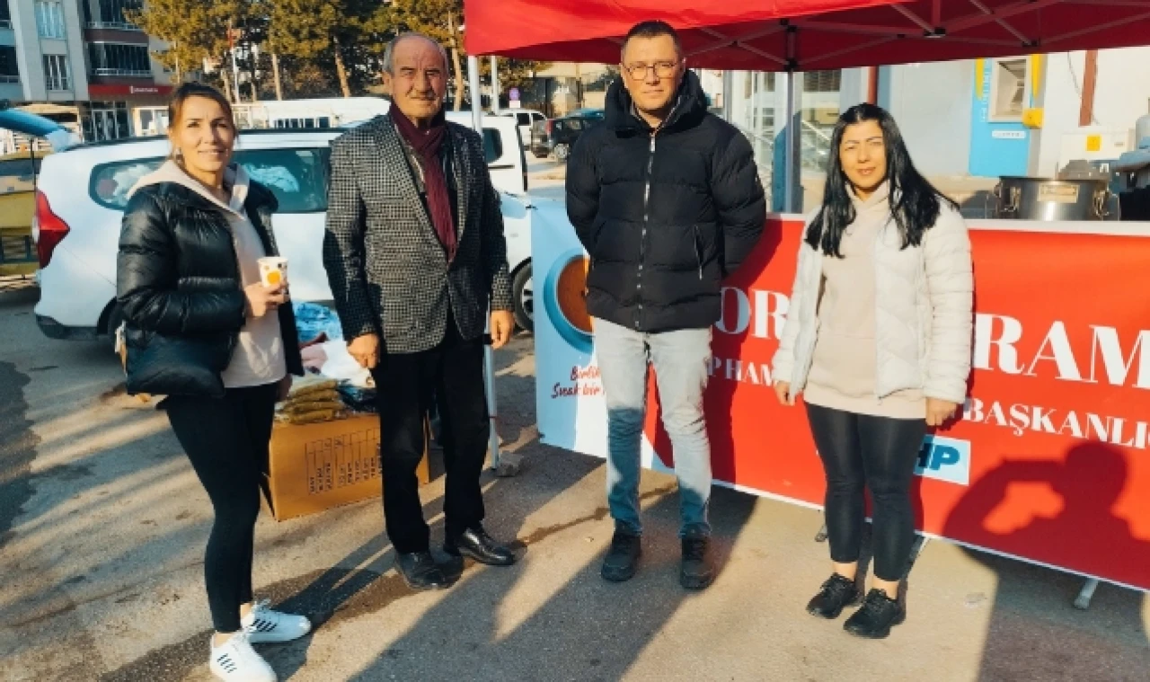 Soğuk havada, pazarda tezgah açan esnaf ve hemşehirlilere çorba ikramında bulunan Cumhuriyet Halk Partisi Hamamözü İlçe Teşkilatı vatandaşların her zaman yanında olduklarını belirtti.